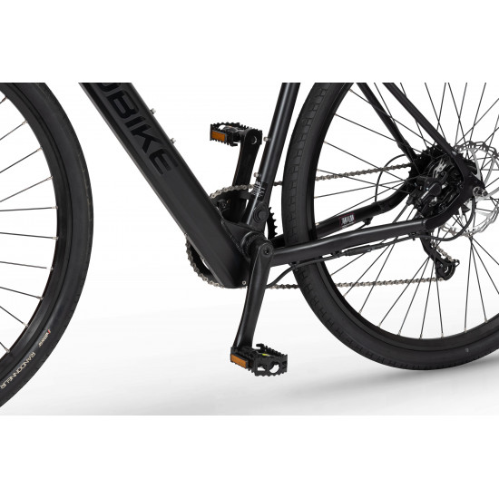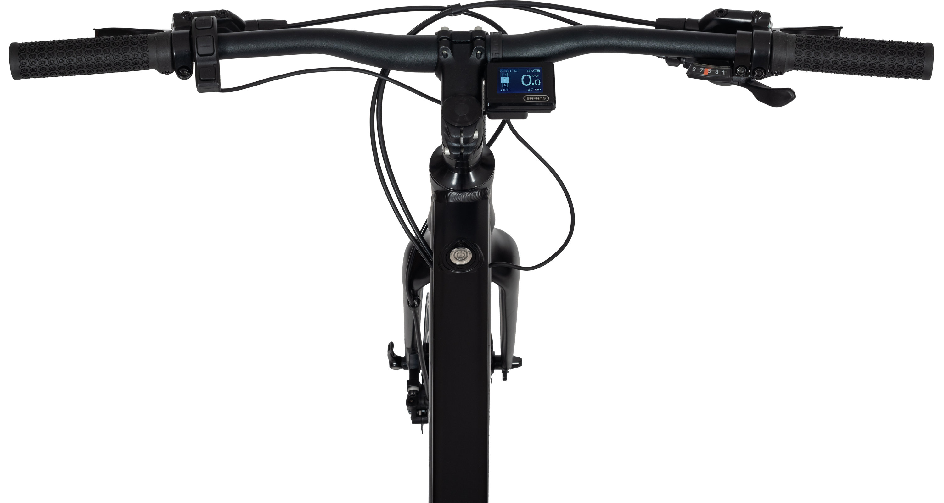 At first glance, it's hard to see the characteristics of an electric bike in the Urban, but it is a true e-bike. The electrical secrets of our fitness bike are hidden in the rear hub, where we discreetly mounted the motor and the frame with a covered battery. The display is inconspicuously, but practically, based right next to the stem. The entire system is based on Bafang technology. The bike was supposed to be minimalist and this unique style was fully achieved.