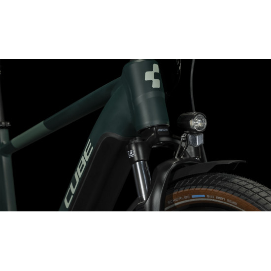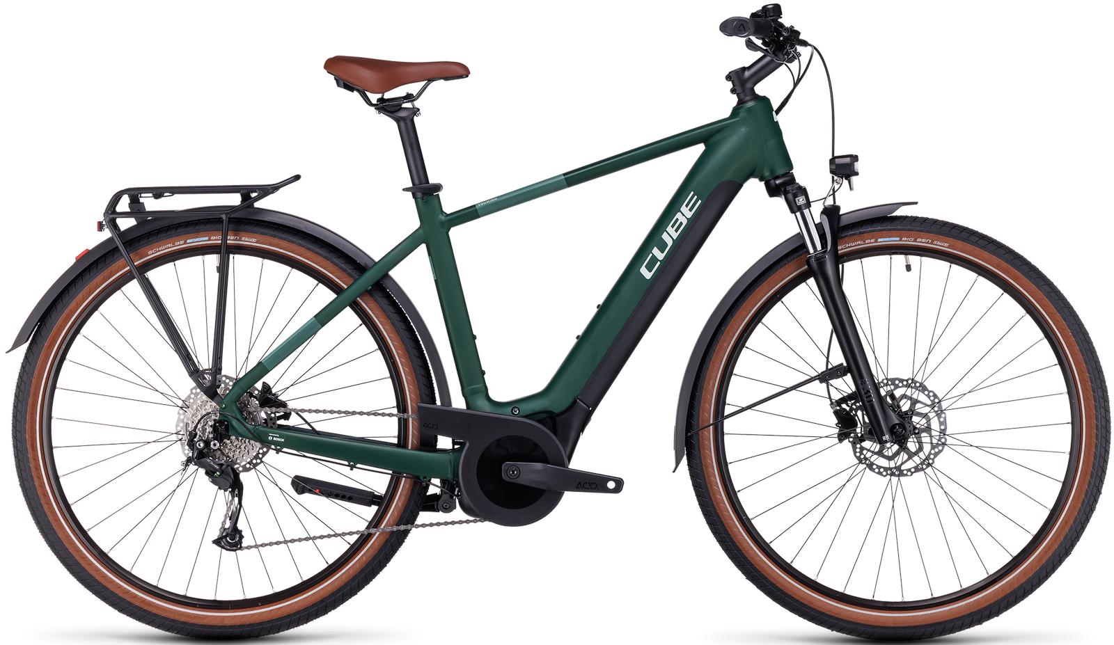 Wherever you're heading, the Touring Hybrid ONE will help you get there in comfort and style. The powerful Bosch drive unit, PowerTube battery and reliable, easy-to-use Shimano 9-speed gears make light work of any journey. Carrying your stuff with you is easy and safe, thanks to the included luggage carrier. Powerful Shimano hydraulic disc brakes and full-length mudguards shrug off bad weather, and the 100mm suspension fork and wide, grippy tyres make even rough city streets a pleasure to ride. We even included an integrated lighting system and kickstand. Just jump on, and go...Built around Bosch's powerful third-generation motor and PowerTube battery, the Touring Hybrid ONE's low centre of gravity ensures safe, intuitive handling. There's a choice of frames - classic Men's, Trapeze, or Easy Entry - and a range of sizes in each, so you're sure to find the perfect fit for you. And whichever one you choose, the Efficient Comfort Geometry will put you in a natural-feeling, comfortable position for any journey, whether it's a short ride to the shops or a longer route at the weekend.FRAME: Aluminium Superlite, Gravity Casting Technology, Efficient Comfort Geometry, Tapered Headtube, Full Integrated Battery, Semi-Integrated CarrierFORK: SR Suntour NVX30 Coil, 100mmHEADSET: M/Z: ACROS AZF-1039, 1 1/8" straight, Top Zero-Stack 1 1/8" (ZS 44mm), Bottom Zero-Stack 1 1/2" (ZS 56mm) // EE: ACROS AZX-1041, BlockLock 135°, 1 1/8" straight, Top Zero-Stack 1 1/8" (ZS 44mm), Bottom Zero-Stack 1 1/2" (ZS 56mm)STEM: CUBE Performance Stem Pro, 31.8mmHANDLEBAR: CUBE Comfort Trail Bar, 700mmGRIPS: Natural Fit ComfortREAR DERAILLEUR: Shimano RD-M3100-SGS, 9-SpeedSHIFTERS: Shimano SL-M3100-R, Rapidfire-PlusBRAKES: Shimano BR-MT200, Hydraulic Disc Brake (180/180)CHAINWHEEL: ACID E-Crank, 40T, 175mm (EE: 170mm)FREEWHEEL: Shimano CS-HG201, 11-36TCHAIN: KMC X9RIMS: CUBE EX23, 36H, Disc, Tubeless ReadyHUBS: Shimano HB-TX505, QR, CenterlockTYRES: Schwalbe Big Ben, Active, 55-622PEDALS: ACID Plastic TrekkingSADDLE: Natural Fit Sequence ComfortSEAT POST: CUBE Performance Post, 30.9mm Seatpost clamp: CUBE Varioclose, 34.9mmLIGHTS: Light set: Front - CUBE Shiny 50 Lux, 12V, DC; Rear - ACID Mudguard Rear Light PRO-E, 12V, DCKICKSTAND: CUBEstand CmptMUDGUARDS: ACID 65 BB-MountCARRIER: ACID Semi-Integrated Carrier, ACID RILink Adapter CompatibleENGINE: Bosch Drive Unit Performance Generation 3 (65Nm) Cruise (250Watt)BATTERY: Bosch PowerTube 500; Charger: Bosch 2ACONTROLLER: Bosch PurionWEIGHT: 25.1 kgSPEEDS: 9Package information(aprox.): Box size in meters (1.685 x 0.26 x 0.935); Gross weight including package (30.1 kg)CUBE Kickstand, Carrier and Mudguards compatibility lists (factory recommendations):Compatible carrier list: https://bit.ly/3hxD0qFCompatible mudguard list: https://bit.ly/2XjpGyPCompatible kickstand list: https://bit.ly/3k9dycXThis may only be used as a reference for CUBE 2022 and 2023 collections only. It only contains compatibility information about CUBE/ACID/RFR branded kickstands, carriers and mudguards for some of Cube bikes. For compatibility with other accessories please ask if you're not sure.Frame geometries can be found on www.cube.eu