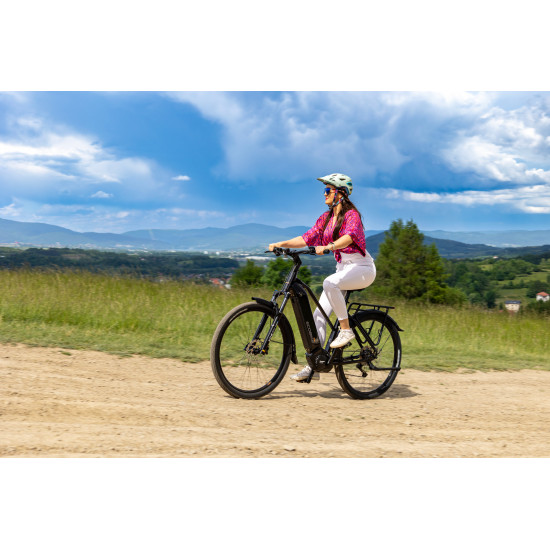 - Maximum range - Specifies the maximum route length you can travel on one full battery charge. The distance depends on the rider's weight, battery capacity, weather, terrain difficulty as well as the level of selected support mode. Please note that over the years of use - battery capacity will become lower. This is a normal chemical process of Li-Ion battery cell aging. Improper use and/or modifications may reduce the maximum range.