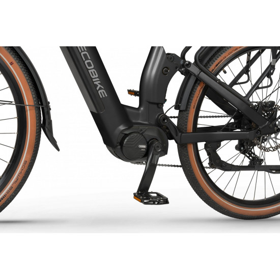Ecobike Flex is equipped with a central motor delivering an impressive 100 Nm of torque, easily handling steep climbs and dynamic riding. Its powered by a massive 900 Wh battery, giving you the freedom to cover long distances without worrying about running out of energy.