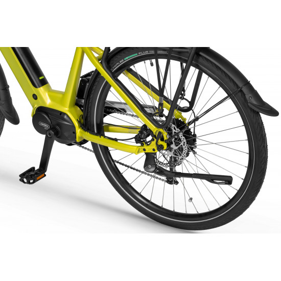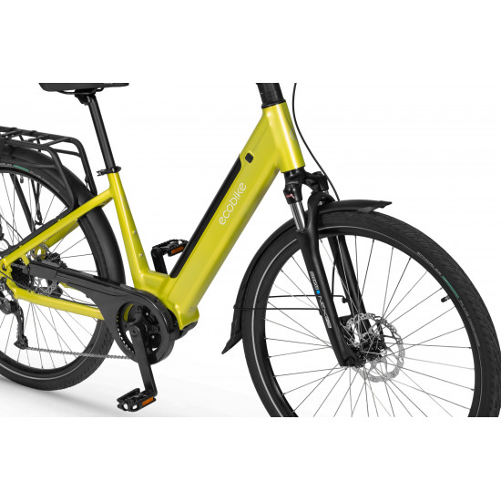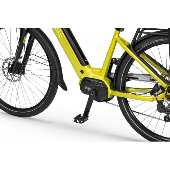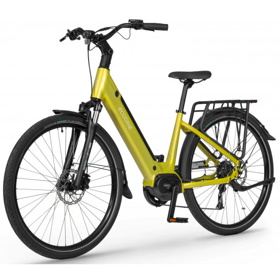The Ecobike LX 100 is equipped with an intelligent assist system featuring the Bafang M210 motor, which operates quietly and efficiently, delivering power and torque up to 80 Nm. The frame geometry allows for a comfortable riding position, and its universal design appeals to various tastes. The MIK system on the rear rack lets you securely mount panniers.