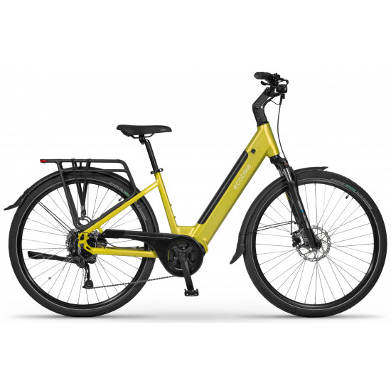 The Ecobike LX 100 is equipped with an intelligent assist system featuring the Bafang M210 motor, which operates quietly and efficiently, delivering power and torque up to 80 Nm. The frame geometry allows for a comfortable riding position, and its universal design appeals to various tastes. The MIK system on the rear rack lets you securely mount panniers.