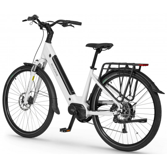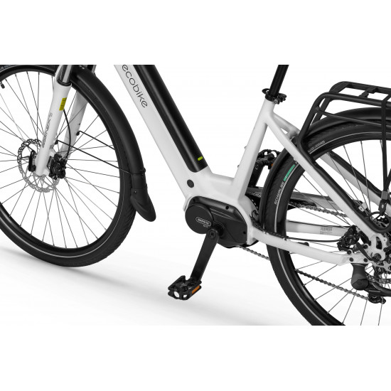 The Ecobike LX 100 is equipped with an intelligent assist system featuring the Bafang M210 motor, which operates quietly and efficiently, delivering power and torque up to 80 Nm. The frame geometry allows for a comfortable riding position, and its universal design appeals to various tastes. The MIK system on the rear rack lets you securely mount panniers.