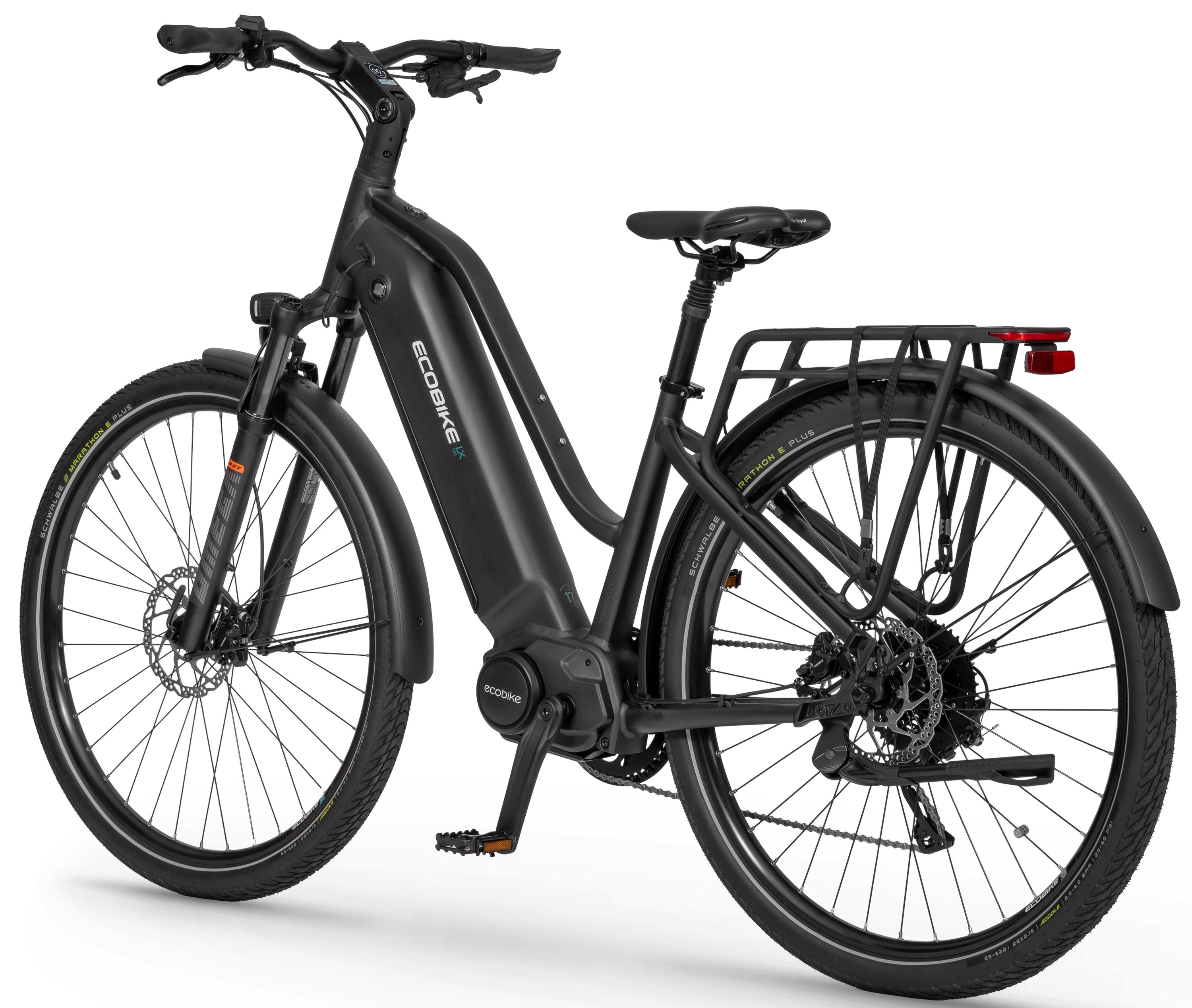 Progress is our path. Now you choose your own and follow it with the support of the best technology. Discover new possibilities with the Ecobike LX500 and enjoy the ride with no limits! The unique design of the LX500 brings together the three most important factors for us: comfort, durability and ergonomics. The geometry of the frame allows you to maintain the optimal position for both short trips and longer trips. The reinforced structure ensures safety, and all vibrations and shocks are distributed in such a way that the ride gives as much pleasure as possible. We managed to achieve great balance by placing the motor at the right angle and the battery at the bottom of the frame. Be sure that the LX500 will drive safely and confidently, and thanks to the fully integrated battery into the frame it will amaze and surprise everyone. The electric system hidden in the Ecobike LX500 is an intelligent organism. The Ananda middrive generates a whopping 130 Nm of torque, which allows this machine to climb even the steepest climb. Although the potential is very large, the users decides how they wants to ride, and the intelligent monitoring system of the way of movement will adjust the work of the bike in such a way that it is smooth, lasts as long as possible, and at the same time it is as close to natural riding as possible by bicycle. The unique possibilities could not be achieved without advanced power supply. Ecobike LX500 is supported by 48V batteries equipped with the Smart BMS system, which intelligently manages the battery operation, allowing it to keep it in good condition for years. There are two powerful variants to choose from: 14 Ah with 696 Wh and 17.5 Ah with 840 Wh. We have made sure that there was enough energy. You will surely like the control panel with a color display. It has been equipped with a dusk sensor that automatically turns on the bicycle's lighting after dark. The user-friendly interface ensures easy, intuitive operation, and there are many functions and configuration options for electric drive system. At Ecobike, technological progress meets passion for bicycles. The LX500 is a proud example of this - in addition to proven technology, it could not lack reliable components. Bike traction like this one is essential. We have taken care of it using an RST OMEGA TNL suspension fork and Schwalbe Big Ben Plus 28x2.15 tires. The highest level of safety is provided by SRAM Level hydraulic disc brakes. The derailleur in an electric bike with a middrive must be very durable. We used the SRAM GX model in the LX500. So that the LX500 is ready for anything out of the box, we've equipped it with complete lighting, fenders, a rack and the comfortable Selle Royal saddle. The Ecobike LX500 has been created in order to allow others to choose their own path.