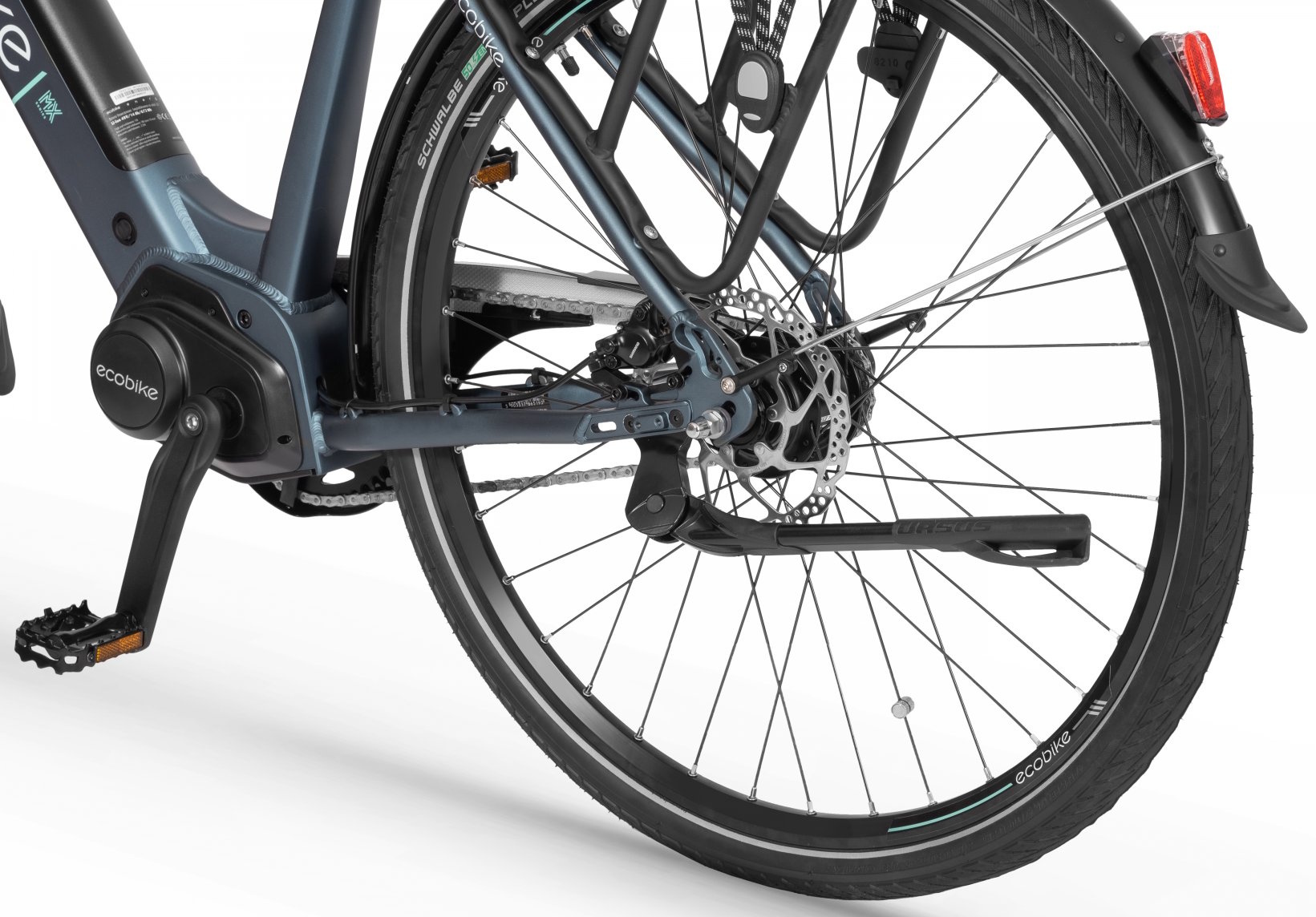 The frame geometry used in the MX is not only pleasing to the eye due to a perfectly matched battery or interesting design, but also works well in practice. The new design allows you to get in comfortably and take the optimal position for short journeys or longer trips. The changed ergonomic makes a great distribution of mass, it improves the grip of the battery, as well as its insertion and removal. The heart of the Ecobike MX is the developed and used by us for a long time Ananda mid drive. Its high torque of 90 Nm ensures efficient performance support even on steep climbs. Equipped with a pressure sensor, it enhances a unique driving experience, which remains smooth even in difficult conditions. The secret of good performance is a 48V system powered by a powerful battery. You will appreciate the control panel with a color display. It has been equipped with a dusk sensor that automatically turns on the bicycle lighting after dark. The user-friendly interface ensures easy, intuitive operation, and there are many functions at your disposal and configurable electric assist. Even the best system will not provide an interesting driving experience without finest components. The Shimano Nexus 7 derailleur is the crucial position in the MX specification, which is ideal for city traffic, as you can shift gears even when stop at traffic lights. It is also characterized by great durability and resistance to external factors. We have also used a SunTour Nex shock, Shimano hydraulic disc brakes, and strong Shcwalbe Energizer Plus tires - all of which makes the MX is a solid bike that can handle many demanding routes. The Ecobike MX also has been equipped with a rack, fenders, a comfortable Selle Royal gel seat and complete lighting, so it is immediately ready for your first journey.