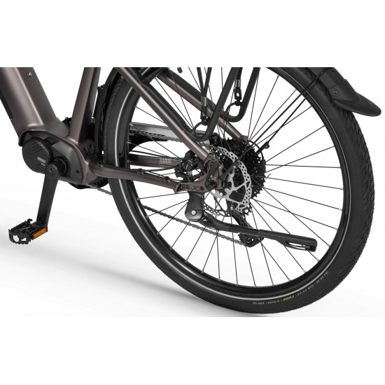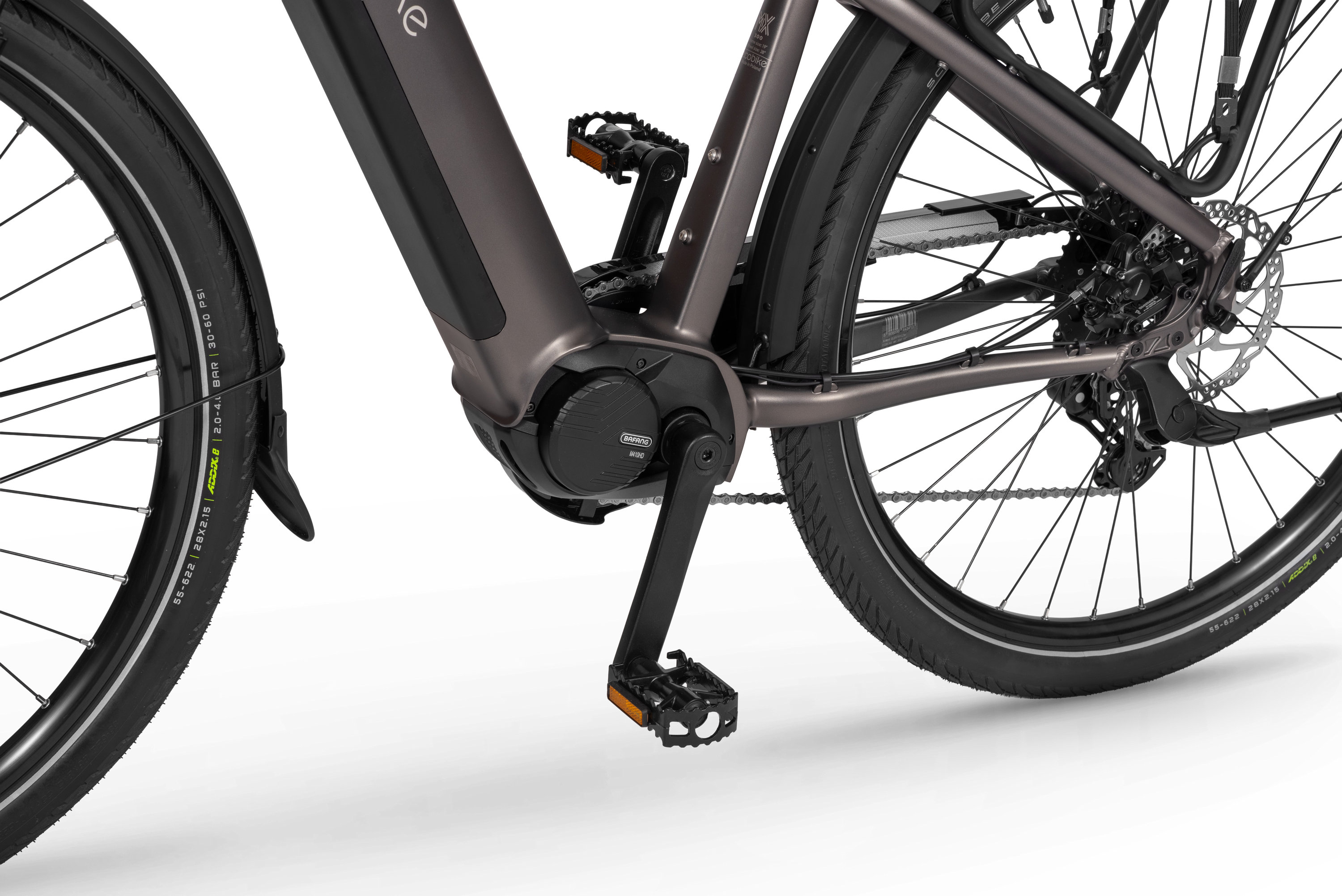 At the heart of the MX 300 lies a modern mid-drive motor supported by the complete Bafang system. It delivers smooth and natural assistance, performing equally well in the city and on longer trekking routes.