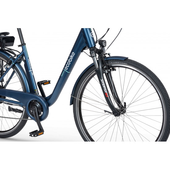In addition, the bike will meet expectations regarding comfort and safety. Traffic is equipped with complete lighting powered by the main battery, Shimano Altus gears, SunTour CR8V suspension fork, adjustable stem, fenders, and a comfortable Selle Royal saddle.