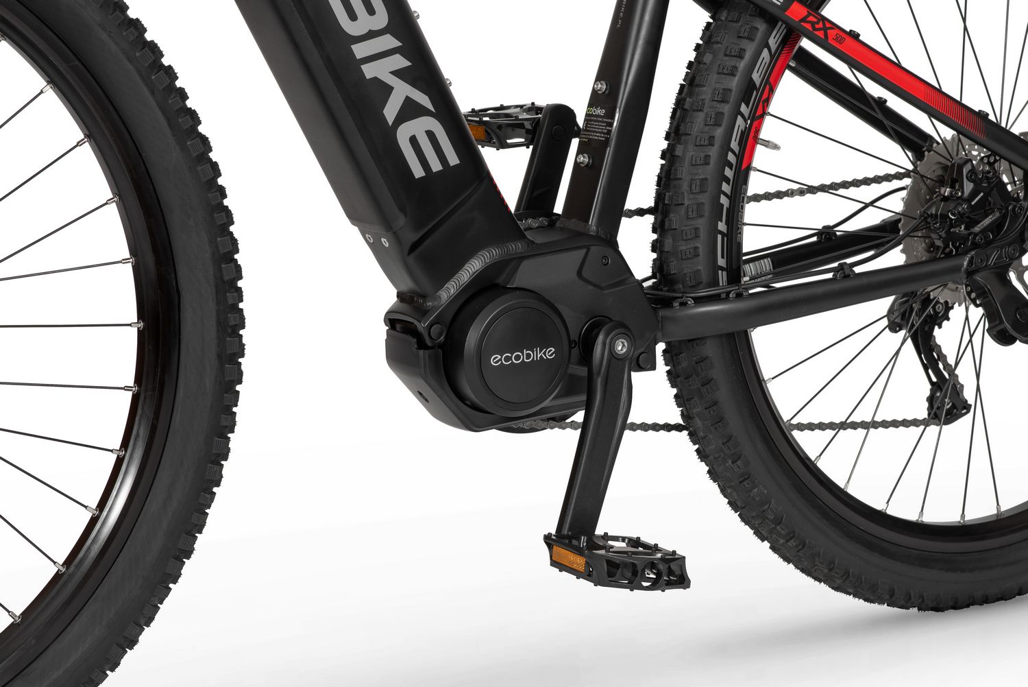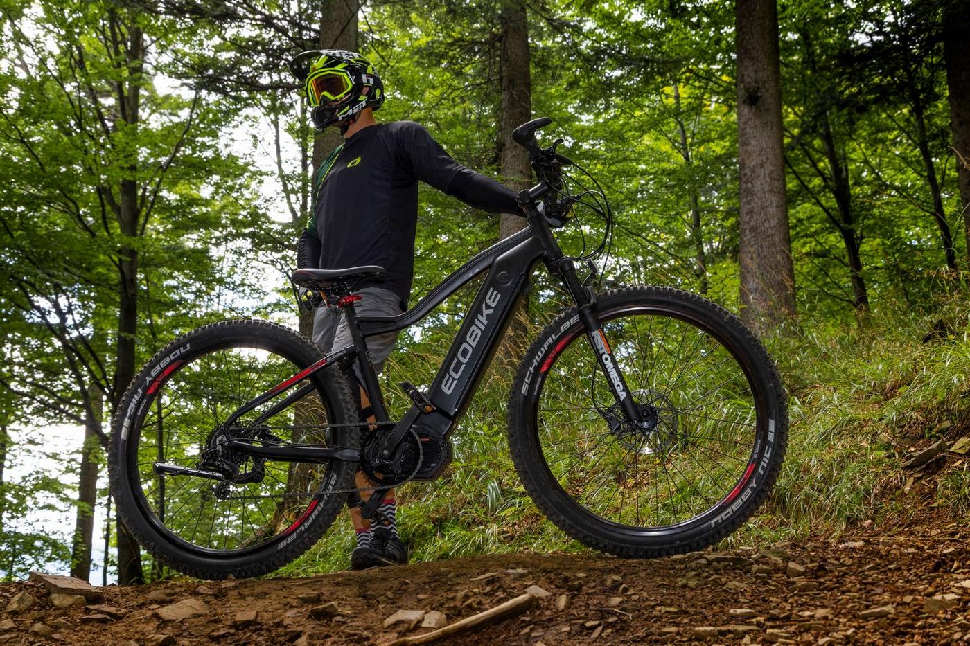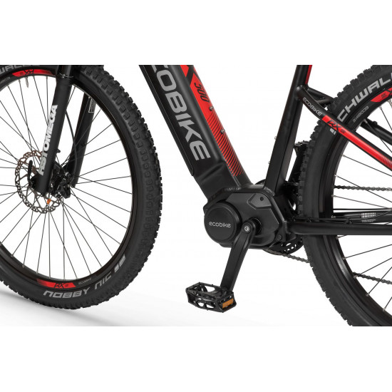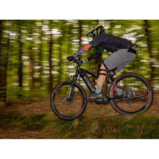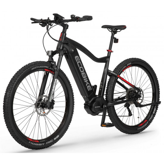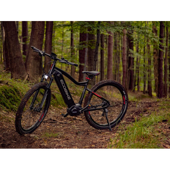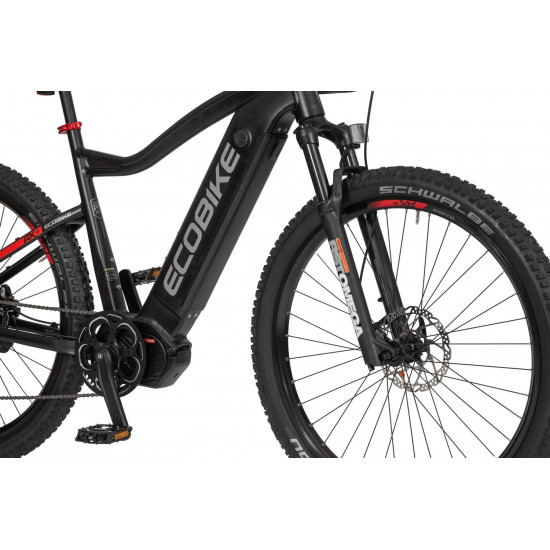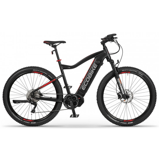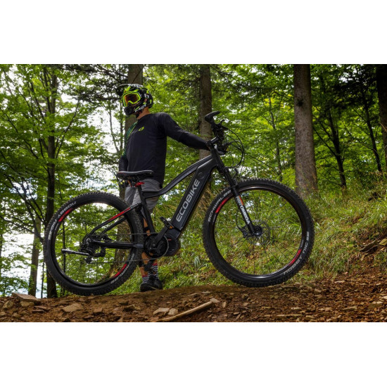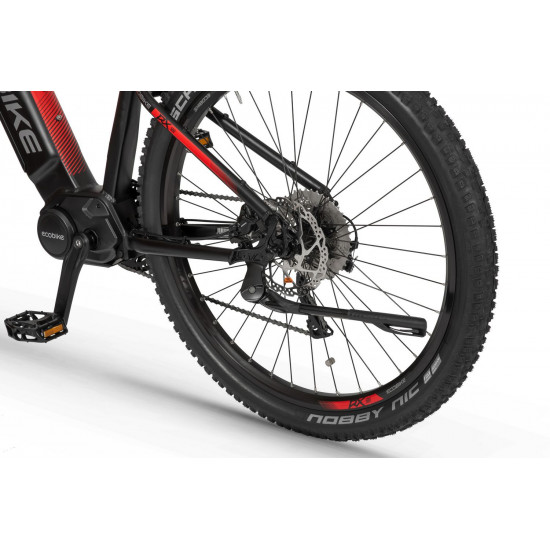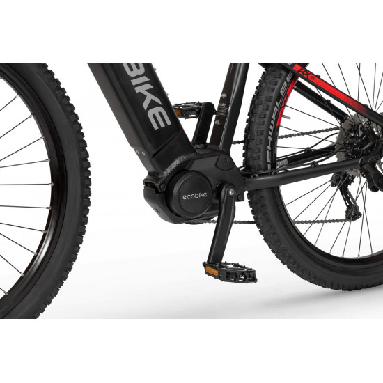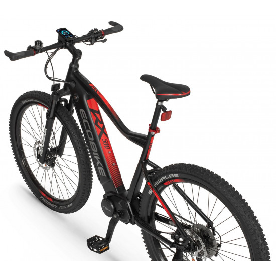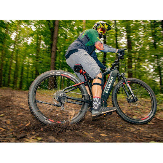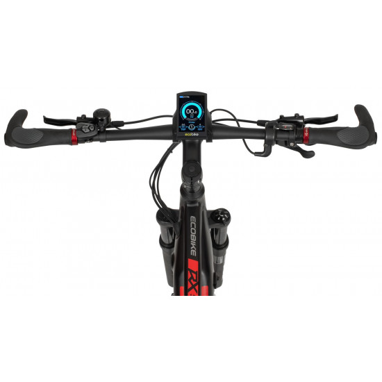 Ecobike is one of the first e-bike manufacturers in Europe. This means company has a many years of experience in electric bikes manufacturing and it can offer an ideal price vs quality ratio. World-class components assembled carefully with love for bicycles in Poland. All these advantages gained trust across the entire European continent. Forget about all you haven't been able to achieve before. Choose a destination, and the technology will make sure you are exactly where you want. Meet the new RX500 model and see, how easy today is what seemed impossible yesterday. Ecobike RX500 is an MTB e-bike equipped with the most advanced solutions available on the market. The heart of the bike is the Ananda middrive, which develops a maximum power of 960W, and its torque reaches up to 136 Nm. Such power in two-wheelers so far has been only available for motorcycles. That is why you will overcome any hill with amazing ease. Places you have never reached by bike will become a new direction of your adventures, and even a simple ride will provide you with a lot of emotions. The energy used by the electric drive system comes from a 48V LG battery. You can choose two options: 13 Ah with 624 Wh or 17.5 Ah with 840 Wh. Interconnected intelligent engine and battery systems will ensure that you can enjoy your ride as long as possible. The battery has a SMART BMS system that constantly monitors its operation and records the charging circuits. The system is supported by a display with a color screen. It has been equipped with a dusk sensor that automatically adjusts the screen backlight to the conditions in which you are moving. Its friendly interface ensures intuitive navigation between individual functions and settings. Advanced technology requires an appropriate setting, but ergonomics and safety are the key. Frame concept makes the bike look great - the integrated battery is almost invisible, and the motor discreetly reveals its hidden potential. So that the good impression is not spoiled by the feeling of driving, we paid a lot of attention to the geometry. The optimal weight distribution was achieved by placing the motor at the right angle and placing the battery at the bottom of the structure. The RX500 is equipment for special adventures, so we used the RST Omega TNL TAPERED shock absorber and large wheels with wide Schwalbe Nobby Nic 29 x 2.6 tires for good traction in difficult conditions. A powerful middrive requires a solid shifting gear - the chain is shifted by a 10-speed SRAM GX derailleur. The Ecobike RX500 makes exploring difficult terrains easier than ever!DISTANCE:Capacity and range (Can be selected when ordering. If desired option is not shown, it may be sold out). IMPORTANT: distance is not MINIMUM-MAXIMUM range! Both values, for example 60-110km, are maximum distance depending on selected assist mode: [POWER]-[ECO] km. There is no minimum distance!, because it depends on many different factors. More info bellow.48V/13AH: 60-110 km (MAX POWER - MAX ECO)48V/17.5AH (LG): ENGINE:Voltage: 48 VMount: Central (mid-drive)Motor assisted speed: 50 km/h (Limited to 25 km/h in accordance with EU standard EN 15194)Torque: 136 NmMotor's brand: ANANDAPower: 250 WMaximum peak power (requires upgrade kit, which is NOT INCLUDED, upgrade on your own risk, we do not endorse it): 960 WBATTERY:Fuses: 30ALifespan: 700 chargesCharging time: 4-8 hoursType: Li-ionVoltage: 48 VCharger: 100-240V/54.6V 3A D typeCells brand: LGSmart BMS (Battery Managment System)Battery can be removed for chargingCHARGING TIME: 4-8 hoursFRAME: Hydroformed aluminiumFRAME SIZE: 21"FORK: RST OMEGA TNL Tapered, suspensionBRAKES: Shimano BL-MT401 hydraulic discCHAIN: KMC E10SCHAINWHEEL: 1-speedREAR DERAILLEUR: Shimano DEORE RD-M6000-GS 10-speedFREEWHEEL: Shimano DEORE CS-M4100-10 10-speed 11-42THANDLEBAR: Zoom MTB-AL-312BT, aluminium, riser 12mm, diameter in stem fixing spot (center): 31.8mm, length: 720mmSTEM: Promax MA-47, aluminium, fork steerer: 28,6mm, handlebar diameter: 31,8mm, length: 90mm)HUBS: Front hub: Shimano HB-TX505,36H CENTER LOCK / Rear Hub: Shimano FH-TX505-8 CENTER LOCKPEDALS: AluminiumRIMS: 29", reinforcedSADDLE: VELO VL-3363SEAT POST: ZOOM SP-C255, diameter: 27.2mm, length: 350mmSHIFTERS: Shimano DEORE SL-M6000-R 10-speedSPOKES: stainless steelTYRES: Schwalbe Nobby Nic 29 x 2.60 (65-622)WEIGHT: 27,9 kgSPEEDS: 10GRIPS: VELO VLG-1185AD3 Maximum load: 125 kgBattery capacity - is measured in Wh (watt hours) or Ah (amper hours) and usually correlates with the maximum distance bike can cover with a fully charged battery. More capacity - longer range.Maximum range - Specifies the maximum route length you can travel on one full battery charge. The distance depends on the rider's weight, battery capacity, weather, terrain difficulty as well as the level of selected support mode. Please note that over the years of use - battery capacity will become lower. This is a normal chemical process of Li-Ion battery cell aging. Improper use and/or modifications may reduce the maximum range.Bike weight - Total weight of all bicycle components - engine, battery, frame and accessories. EcoBike electric bicycles have the lowest weight-power ratio.Engine power - The nominal power of the electric bicycle's engine, which is legal in most EU countries.Maximum engine power - The power of the electric bicycle's engine, which can be produced without speed limiter and may require replacing some parts to handle the voltages/amperage for the desired power. Maximum engine power cannot be selected by the user without making some hardware/software modifications. Removing limiter may require to register bike as an e-moped. In such case, different road laws applied as well. Improper modifications can lead to a damage of the e-bike system and nor the seller, nor manufacturer will be responsible for any losses or injuries.Lifespan - stated number can be lower if stored and used improperlyMaximum speed is up to 25 km/h, which can be maintained by the engine. 