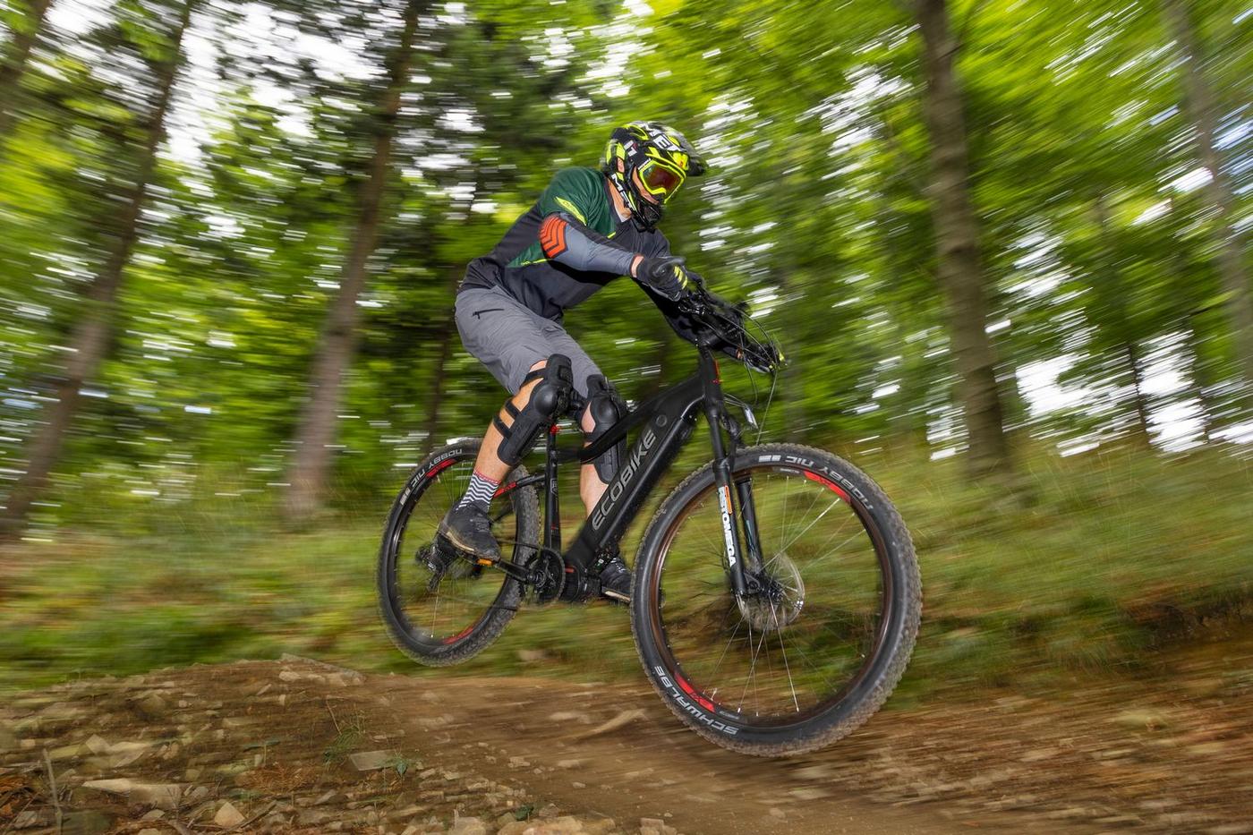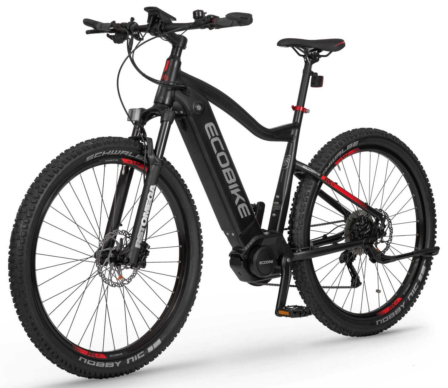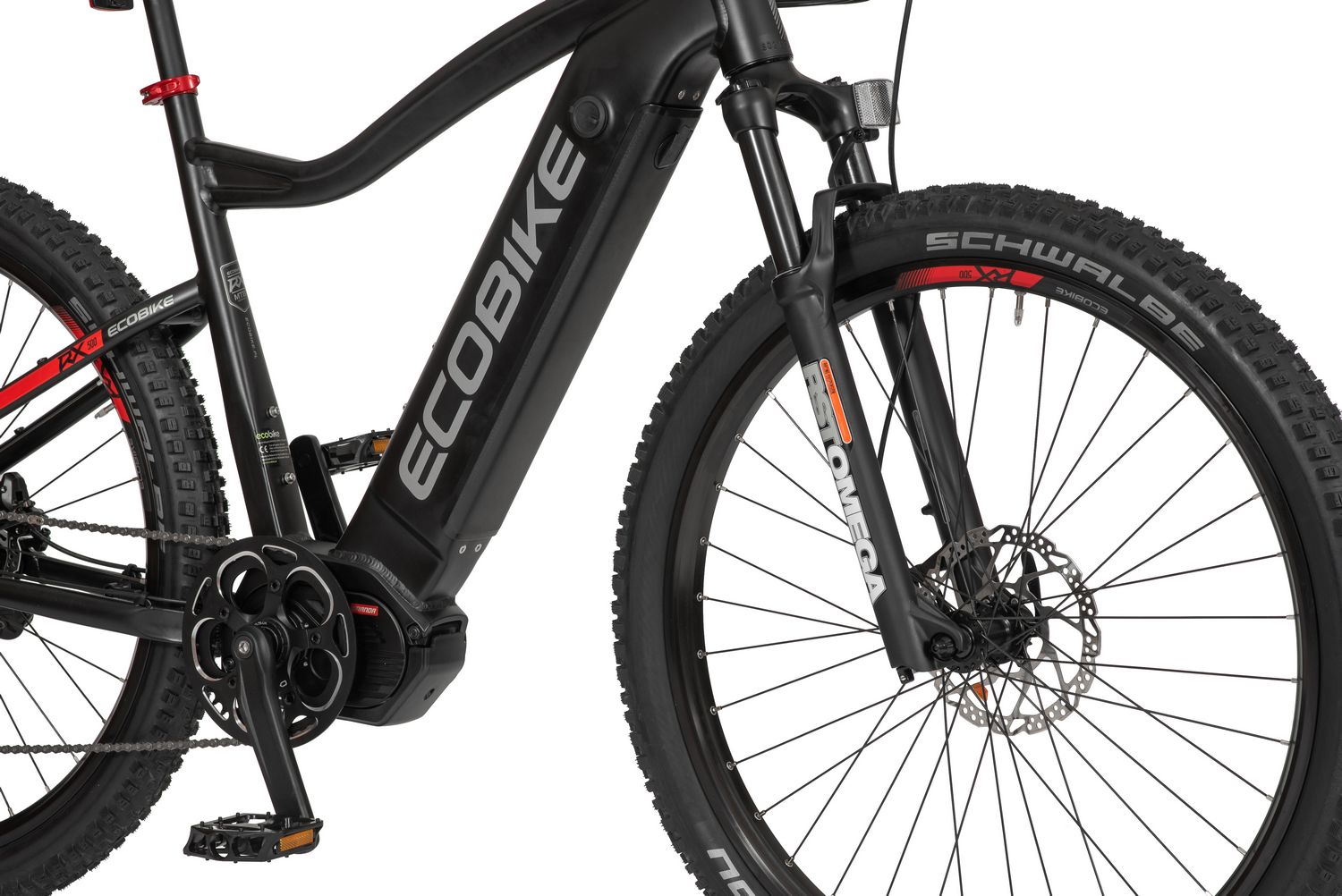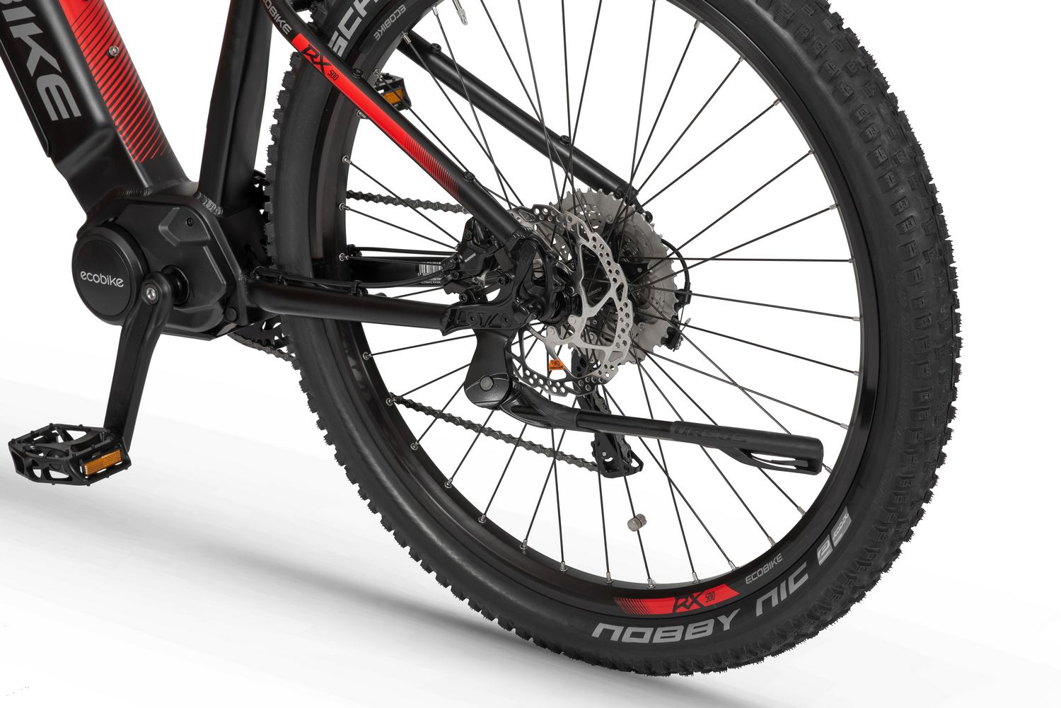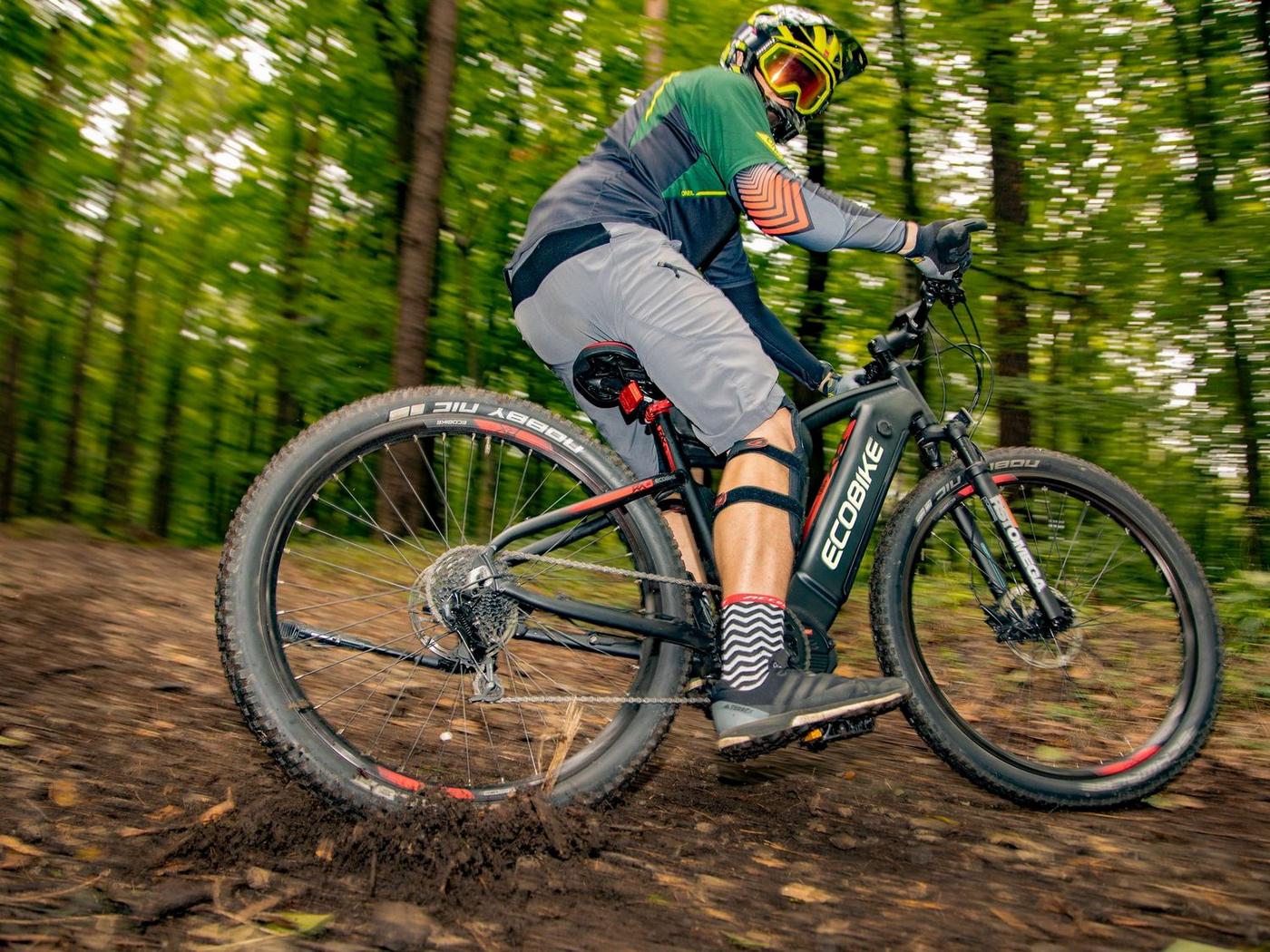 Ecobike is one of the first e-bike manufacturers in Europe. This means company has a many years of experience in electric bikes manufacturing and it can offer an ideal price vs quality ratio. World-class components assembled carefully with love for bicycles in Poland. All these advantages gained trust across the entire European continent. Forget about all you haven't been able to achieve before. Choose a destination, and the technology will make sure you are exactly where you want. Meet the new RX500 model and see, how easy today is what seemed impossible yesterday. Ecobike RX500 is an MTB e-bike equipped with the most advanced solutions available on the market. The heart of the bike is the Ananda middrive, which develops a maximum power of 960W, and its torque reaches up to 136 Nm. Such power in two-wheelers so far has been only available for motorcycles. That is why you will overcome any hill with amazing ease. Places you have never reached by bike will become a new direction of your adventures, and even a simple ride will provide you with a lot of emotions. The energy used by the electric drive system comes from a 48V LG battery. You can choose two options: 13 Ah with 624 Wh or 17.5 Ah with 840 Wh. Interconnected intelligent engine and battery systems will ensure that you can enjoy your ride as long as possible. The battery has a SMART BMS system that constantly monitors its operation and records the charging circuits. The system is supported by a display with a color screen. It has been equipped with a dusk sensor that automatically adjusts the screen backlight to the conditions in which you are moving. Its friendly interface ensures intuitive navigation between individual functions and settings. Advanced technology requires an appropriate setting, but ergonomics and safety are the key. Frame concept makes the bike look great - the integrated battery is almost invisible, and the motor discreetly reveals its hidden potential. So that the good impression is not spoiled by the feeling of driving, we paid a lot of attention to the geometry. The optimal weight distribution was achieved by placing the motor at the right angle and placing the battery at the bottom of the structure. The RX500 is equipment for special adventures, so we used the RST Omega TNL TAPERED shock absorber and large wheels with wide Schwalbe Nobby Nic 29 x 2.6 tires for good traction in difficult conditions. A powerful middrive requires a solid shifting gear - the chain is shifted by a 10-speed SRAM GX derailleur. The Ecobike RX500 makes exploring difficult terrains easier than ever!DISTANCE:Capacity and range (Can be selected when ordering. If desired option is not shown, it may be sold out). IMPORTANT: distance is not MINIMUM-MAXIMUM range! Both values, for example 60-110km, are maximum distance depending on selected assist mode: [POWER]-[ECO] km. There is no minimum distance!, because it depends on many different factors. More info bellow.48V/13AH: 60-110 km (MAX POWER - MAX ECO)48V/17.5AH (LG): ENGINE:Voltage: 48 VMount: Central (mid-drive)Motor assisted speed: 50 km/h (Limited to 25 km/h in accordance with EU standard EN 15194)Torque: 136 NmMotor's brand: ANANDAPower: 250 WMaximum peak power (requires upgrade kit, which is NOT INCLUDED, upgrade on your own risk, we do not endorse it): 960 WBATTERY:Fuses: 30ALifespan: 700 chargesCharging time: 4-8 hoursType: Li-ionVoltage: 48 VCharger: 100-240V/54.6V 3A D typeCells brand: LGSmart BMS (Battery Managment System)Battery can be removed for chargingCHARGING TIME: 4-8 hoursFRAME: Hydroformed aluminiumFRAME SIZE: 21"FORK: RST OMEGA TNL Tapered, suspensionBRAKES: Shimano BL-MT401 hydraulic discCHAIN: KMC E10SCHAINWHEEL: 1-speedREAR DERAILLEUR: Shimano DEORE RD-M6000-GS 10-speedFREEWHEEL: Shimano DEORE CS-M4100-10 10-speed 11-42THANDLEBAR: Zoom MTB-AL-312BT, aluminium, riser 12mm, diameter in stem fixing spot (center): 31.8mm, length: 720mmSTEM: Promax MA-47, aluminium, fork steerer: 28,6mm, handlebar diameter: 31,8mm, length: 90mm)HUBS: Front hub: Shimano HB-TX505,36H CENTER LOCK / Rear Hub: Shimano FH-TX505-8 CENTER LOCKPEDALS: AluminiumRIMS: 29", reinforcedSADDLE: VELO VL-3363SEAT POST: ZOOM SP-C255, diameter: 27.2mm, length: 350mmSHIFTERS: Shimano DEORE SL-M6000-R 10-speedSPOKES: stainless steelTYRES: Schwalbe Nobby Nic 29 x 2.60 (65-622)WEIGHT: 27,9 kgSPEEDS: 10GRIPS: VELO VLG-1185AD3 Maximum load: 125 kgBattery capacity - is measured in Wh (watt hours) or Ah (amper hours) and usually correlates with the maximum distance bike can cover with a fully charged battery. More capacity - longer range.Maximum range - Specifies the maximum route length you can travel on one full battery charge. The distance depends on the rider's weight, battery capacity, weather, terrain difficulty as well as the level of selected support mode. Please note that over the years of use - battery capacity will become lower. This is a normal chemical process of Li-Ion battery cell aging. Improper use and/or modifications may reduce the maximum range.Bike weight - Total weight of all bicycle components - engine, battery, frame and accessories. EcoBike electric bicycles have the lowest weight-power ratio.Engine power - The nominal power of the electric bicycle's engine, which is legal in most EU countries.Maximum engine power - The power of the electric bicycle's engine, which can be produced without speed limiter and may require replacing some parts to handle the voltages/amperage for the desired power. Maximum engine power cannot be selected by the user without making some hardware/software modifications. Removing limiter may require to register bike as an e-moped. In such case, different road laws applied as well. Improper modifications can lead to a damage of the e-bike system and nor the seller, nor manufacturer will be responsible for any losses or injuries.Lifespan - stated number can be lower if stored and used improperlyMaximum speed is up to 25 km/h, which can be maintained by the engine. 