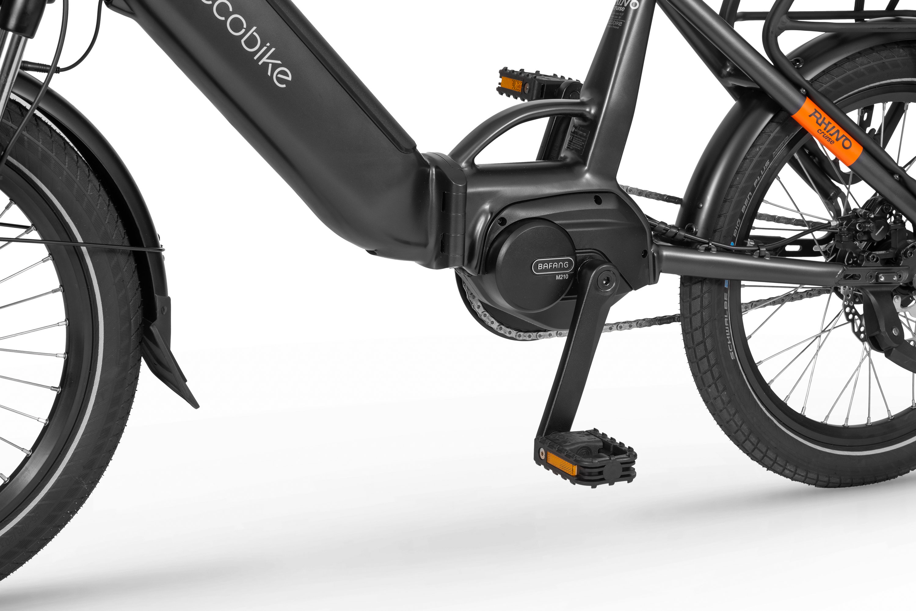 Ecobike Rhino Cruise is a folding e-bike that saves space when you store it, but doesnt lose its potential when you ride it. This is all thanks to the Bafang M210 central motor assist system, which offers high torque of 80 Nm, allowing you to climb even steep hills. Combined with powerful batteries, you get a bike that you can enjoy for many kilometers.