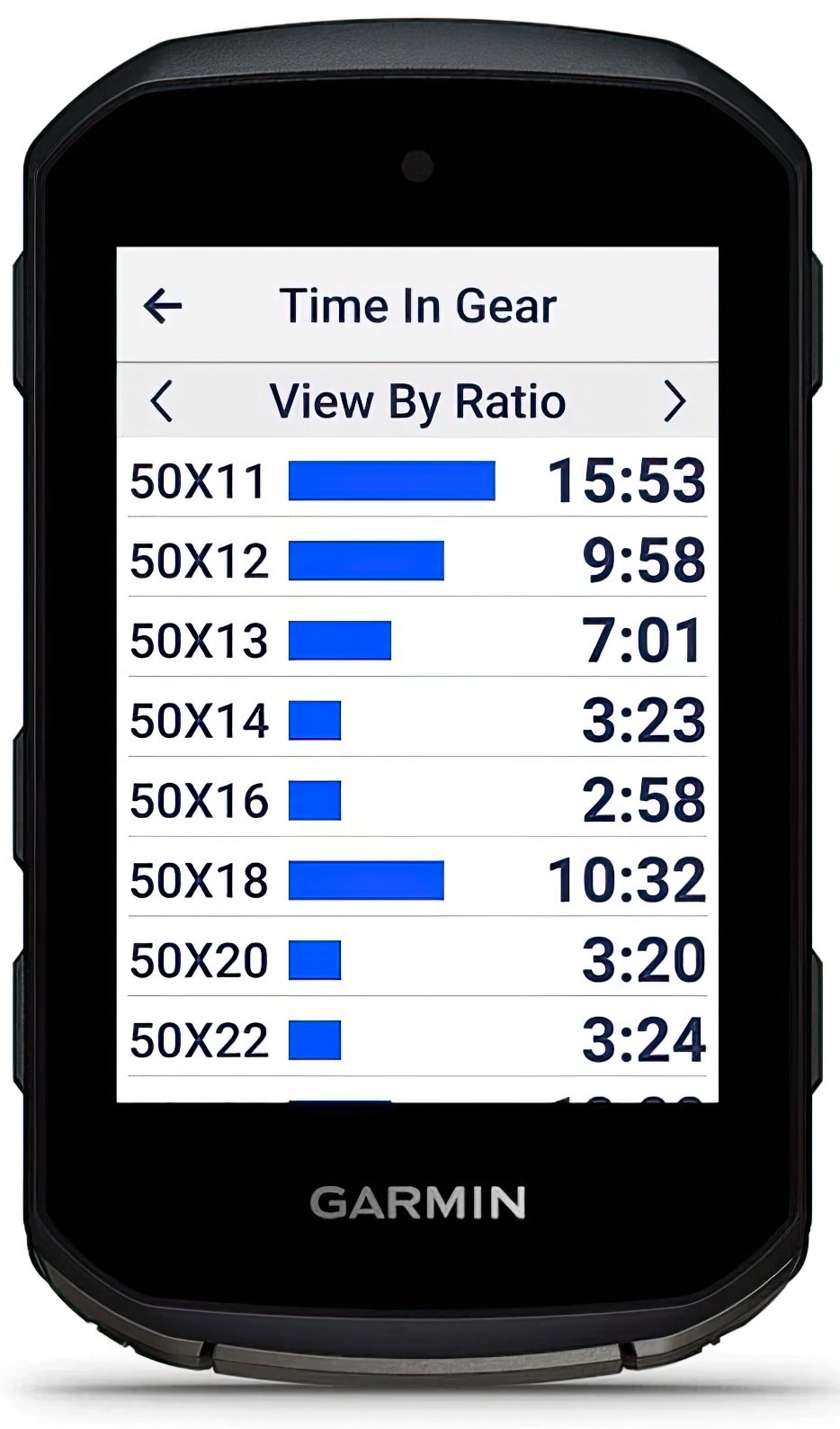 - GEAR RATIO ANALYSIS After the ride, see time spent in each gear ratio when paired with your electronic shifting.