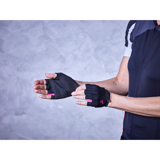 Lightweight and well-ventilated WS short finger glovesCUBE VENT SYSTEMPull-on and tear-off systemAbsorbent fabricVelcro strap with CUBE WINGSNatural Fit gel foam paddingSilicone printsMATERIAL: 50% nylon, 10% elastane, 35% polyurethane, 5% gel foam