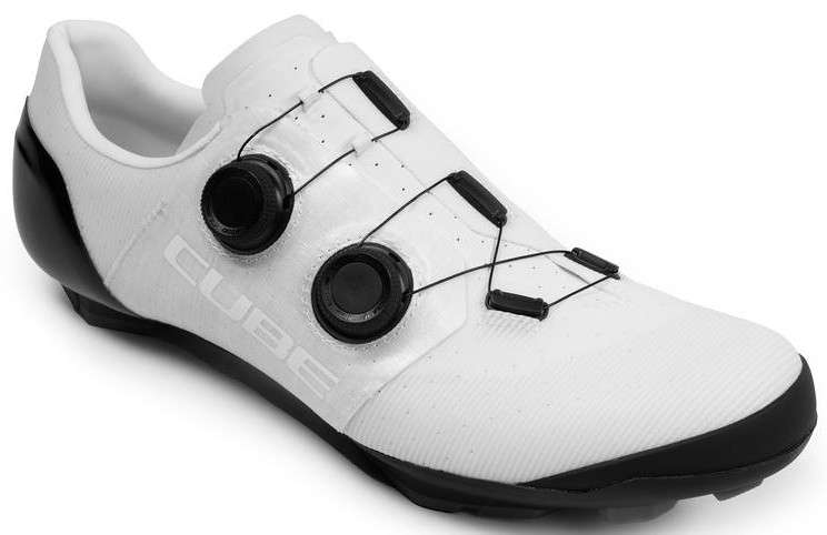 Developed with demanding marathon, cyclocross and gravel riders in mind, the CUBE MTB C:68X shoe represents the pinnacle of off-road shoe design. Featuring a carbon fibre spine for super-efficient power delivery, the use of Peebax TPU also helps reduce weight by up to 20 % over equivalent polymers. There's a recess for clipless pedal cleats, while the super-sticky Infinity Grip rubber tread delivers exceptional traction on pedal flats or for off-bike walking and running. With a dual disc closure for rapid entry and exit as well as secure adjustment, both the heel cap and toe box are reinforced for extra protection, and there's a knitted cuff around the entry point to prevent ingress by sticks and stones. A Dyneema reinforced wrap layer delivers exceptional durability to help withstand the toughest conditions, and the NF Ergonomics insole has the best possible cushioning and pressure distribution to help rider comfort.
