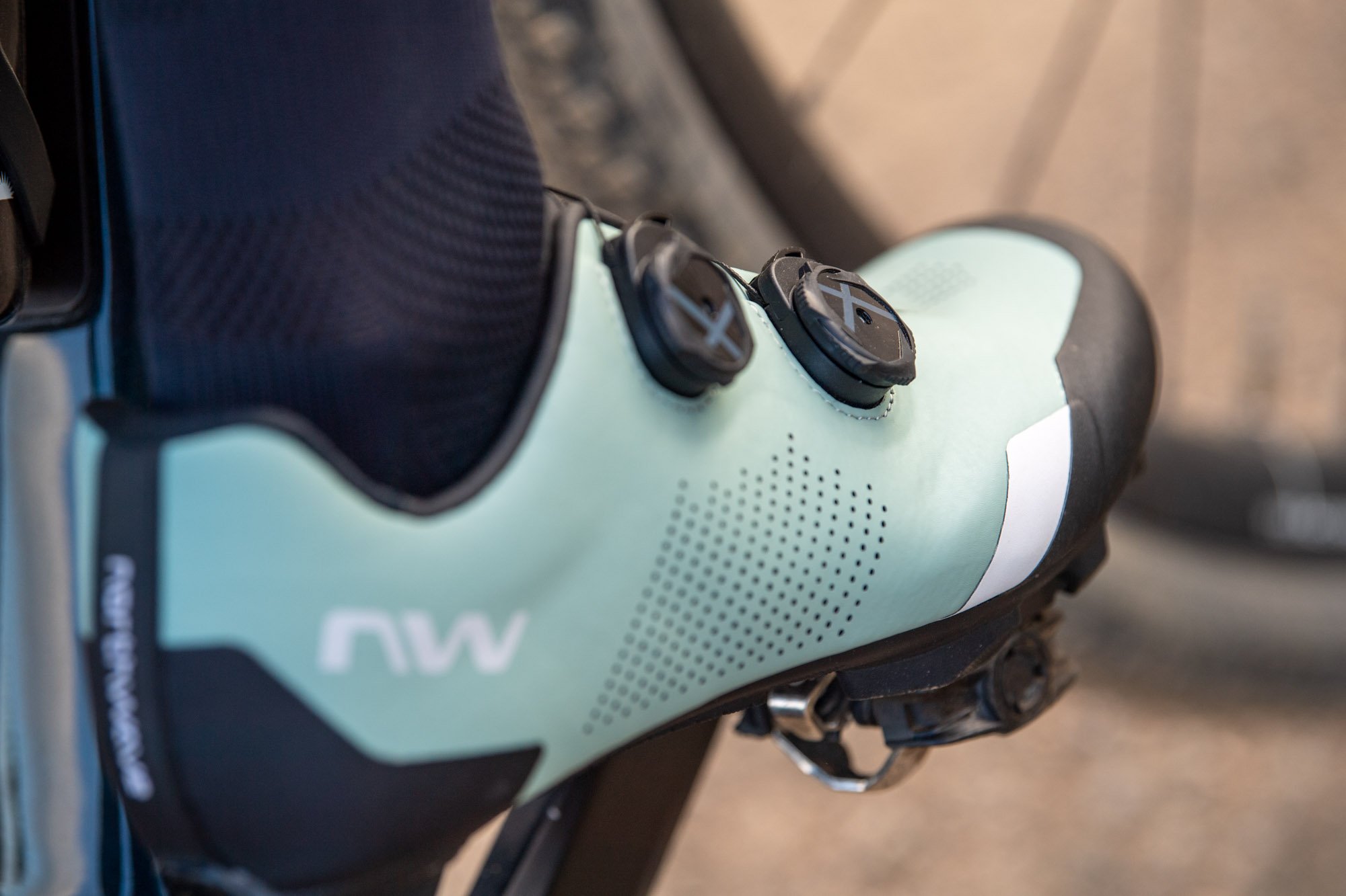 CARBON XC 12 - Extremely stiff when pedaling, thanks to the full carbon insert in the pedal area, but also ideal for long distances, thanks to the additional flex in the midfoot area. Developed with TPU inserts at strategic points to ensure high traction and excellent abrasion resistance.