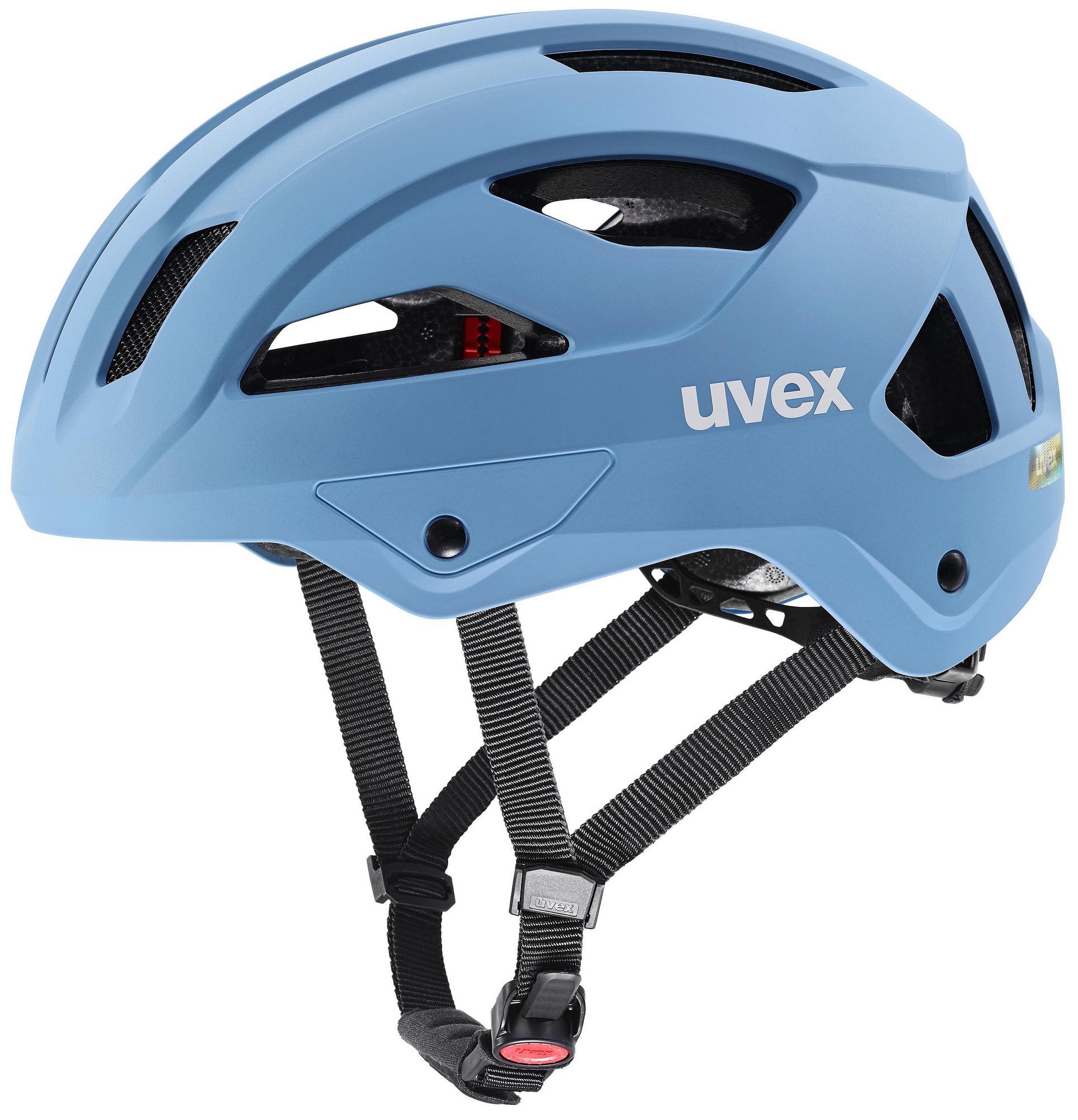 Multi-talent with a perfect fit. The uvex stride comes in three different sizes, making it really flexible and ideal for everyday use. Everyone can find the right fit for them. On its robust hardshell outer, theres even a plug-in LED and a reflective cloth brim so youll feel even safer in the dark.