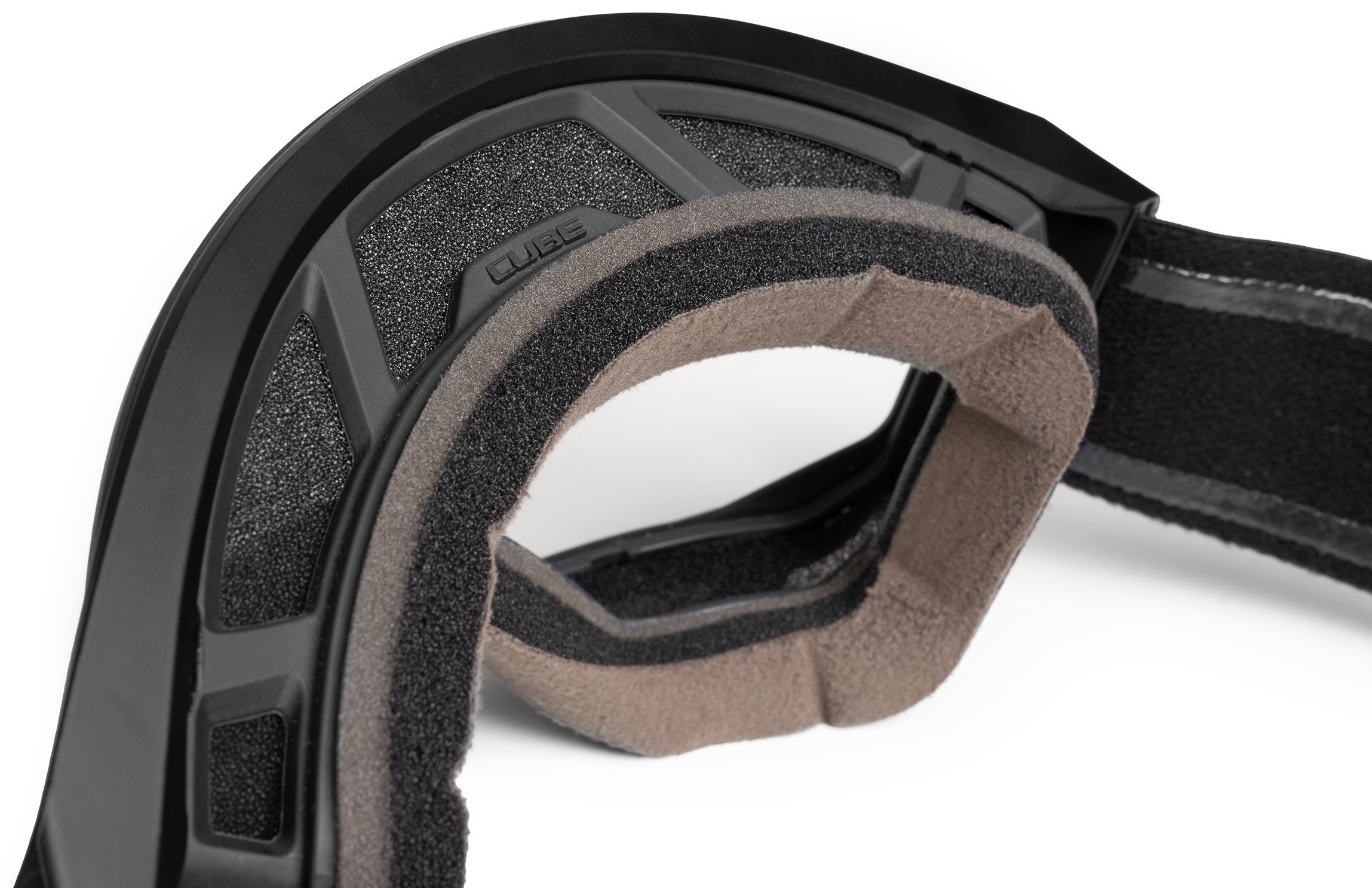 Maximum performance for your toughest descents: The CUBE DH Goggle delivers an ultra-wide field of view while strategically placed vents keep your head cool even on the most demanding downhill courses. Comfort and stability are ensured by the soft triple-layer face foam combined with the MonoLink Outrigger, which distributes pressure evenly across the face. The SnapShift Lens System allows for quick and tool-free lens changes. The lens features both anti-fog and anti-scratch coatings, ensuring crystal-clear vision in every situation. The 45 mm wide, silicone-backed strap offers a secure fit and integrates seamlessly with the CUBE DESCENDER full-face helmet. With StrapLock Technology, the strap is attached cleanly and securely to the outrigger - for maximum stability and a sleek look. Comes with a protective goggle pouch for transport.