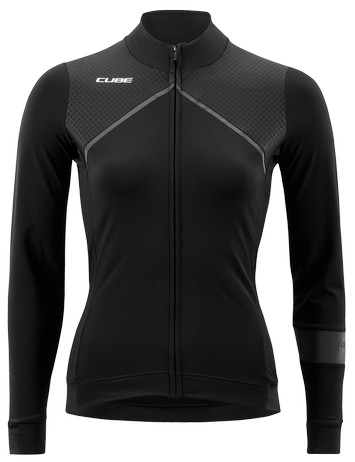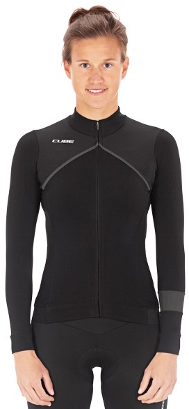 CUBE Blackline WS Long-Sleeve Jersey is a zero-compromise, high-performance piece of kit for those cooler days on the bike. The athletic shape fits closely to the torso and waist but leaves plenty of shoulder room. Maximum flexibility comes courtesy of the full-length front zip with garage, while the lightweight, quick-drying fabric with a fleeced interior will keep you comfy all day long. This premium-quality jersey also includes a silicone-print hem, 3 rear pockets (including a small waterproof zip pocket) and reflective elements to improve passive safety in bad weather.