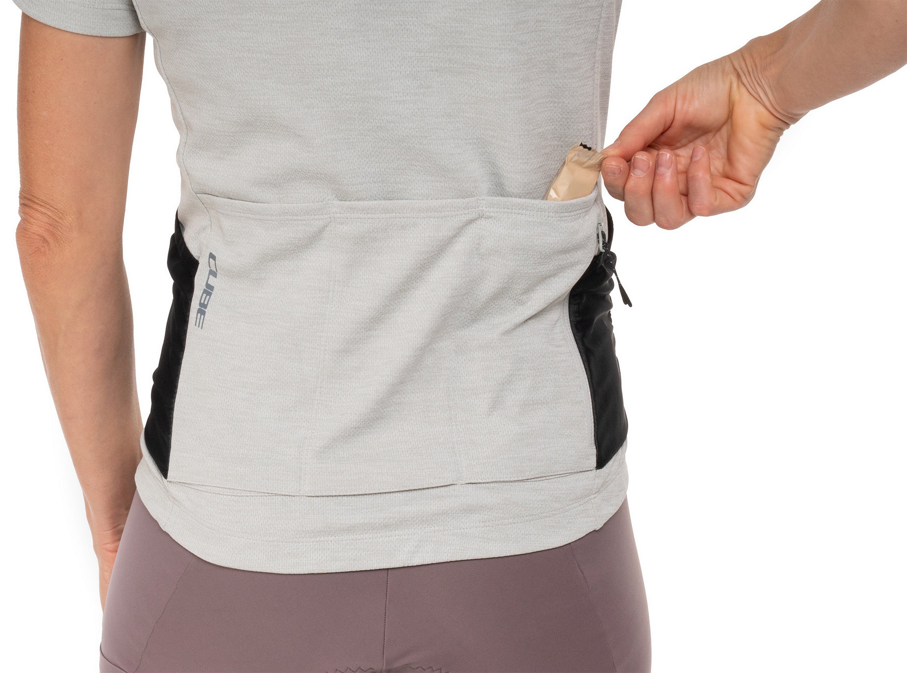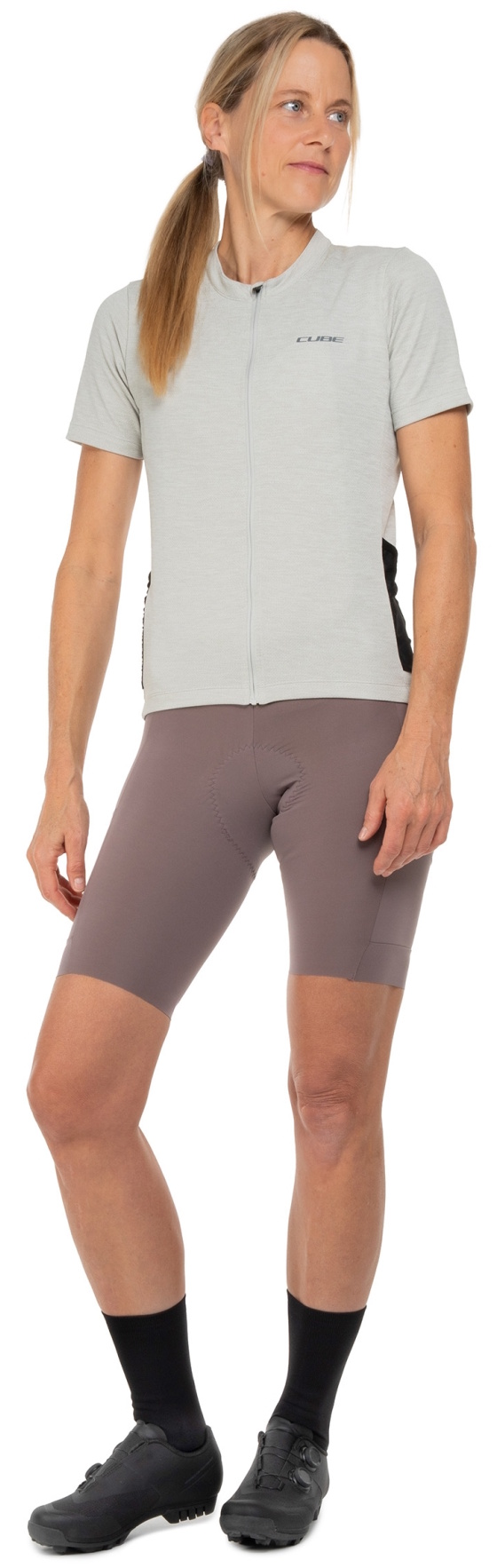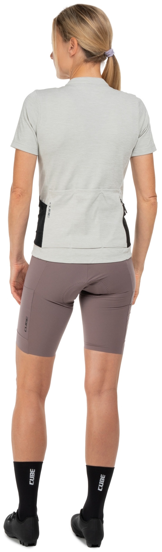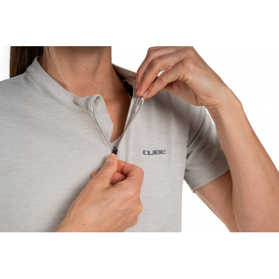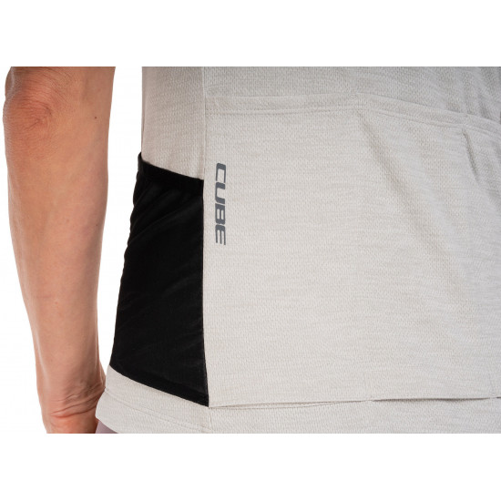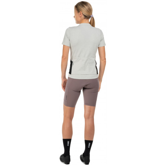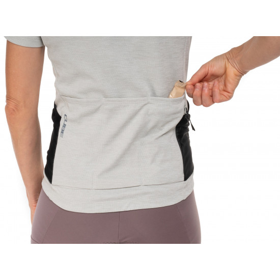 The CUBE GRAVEL WS Short Sleeve Jersey for women with its tight-fit design is the perfect choice for dedicated gravel cyclists. A silicone gripper at the hem prevents riding up and ensures a secure fit, while the breathable fabric helps regulate moisture effectively, making the jersey perfect for long, demanding gravel rides. Anti-odour treatment combats unpleasant odours. Three rear pockets and an additional mesh pocket offer ample storage for ride essentials. Ideal for women seeking a balance of comfort and performance.