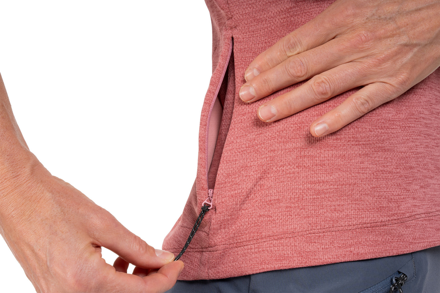 - Bonded back pocket with zipper