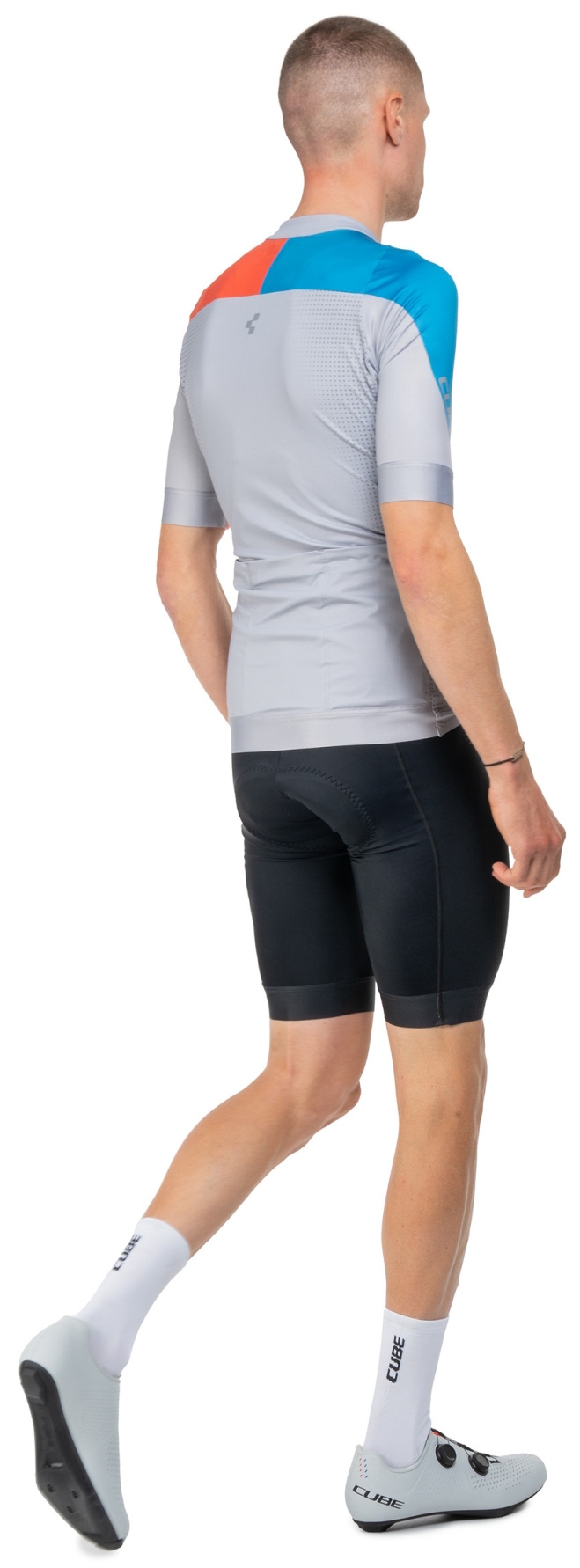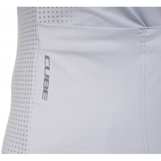 The CUBE Road/XC Short Sleeve Jersey combines a performance fit with thoughtful details. Its athletic cut provides freedom of movement across the shoulders for a natural feel on the bike. A full-length front zip makes it easy to put on and take off. The silicone-printed hem and pre-shaped collar keep the jersey securely in place and shield against draughts. Three rear pockets offer space for snacks and tools, while a hidden, water resistant zip pocket on the side keeps valuables like your phone or cash safe and dry.