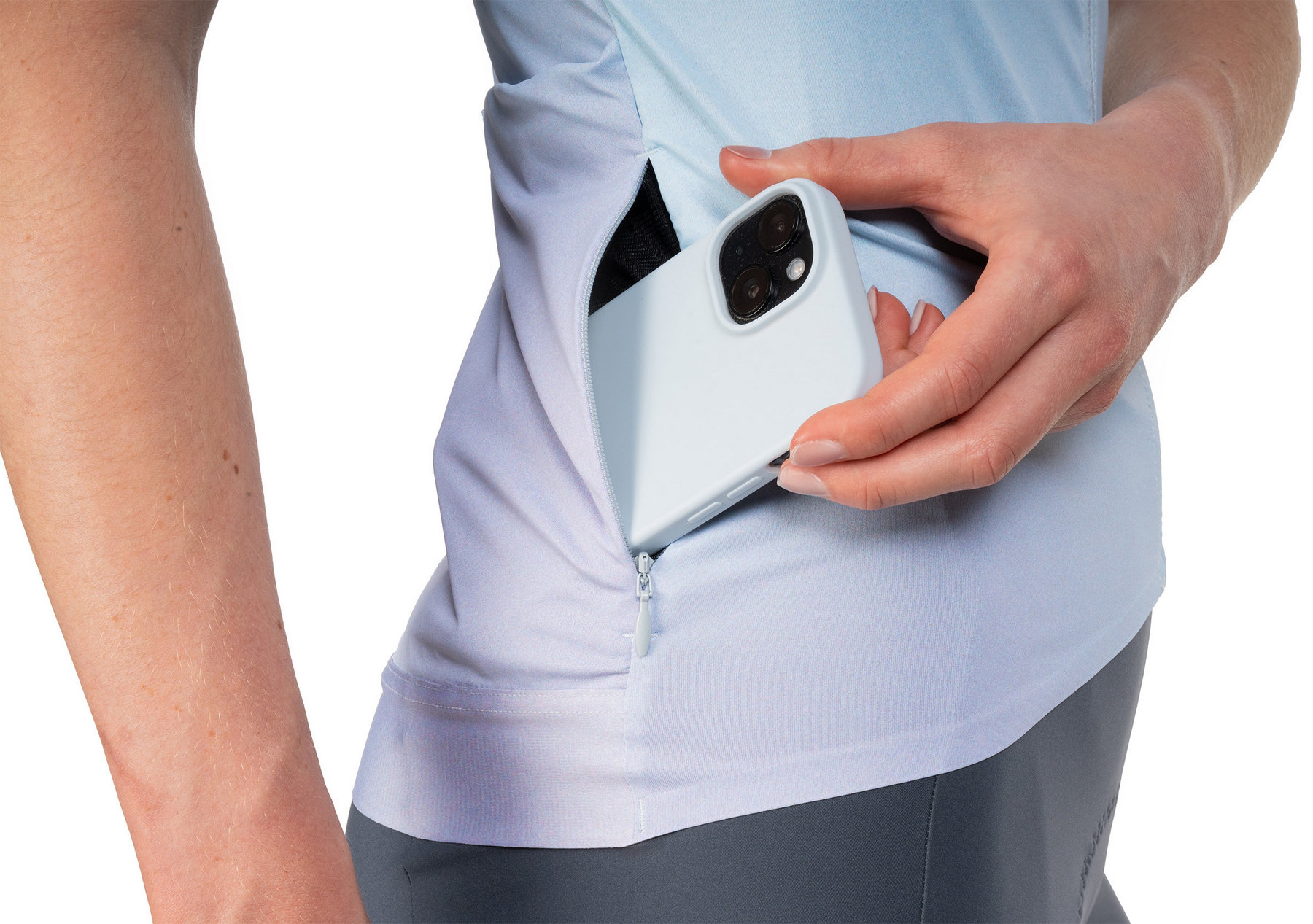 Maximum performance, every mile: The ROAD/XC Womens Jersey features an athletic cut that fits perfectly to your riding position and moves with you effortlessly. The durable, quick-drying fabric keeps you comfortably dry – even during intense efforts. A full-length front zip allows for flexible ventilation, while a small water resistant zip pocket at the back keeps your essentials safe and secure. An elastic silicone gripper at the hem prevents the jersey from riding up, and reflective details enhance visibility in low-light conditions.