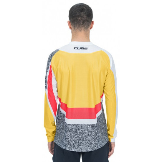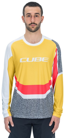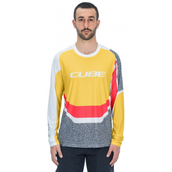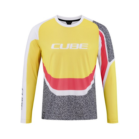 - Cycling jersey Cube Vertex Round Neck L/S yellow'n'pink