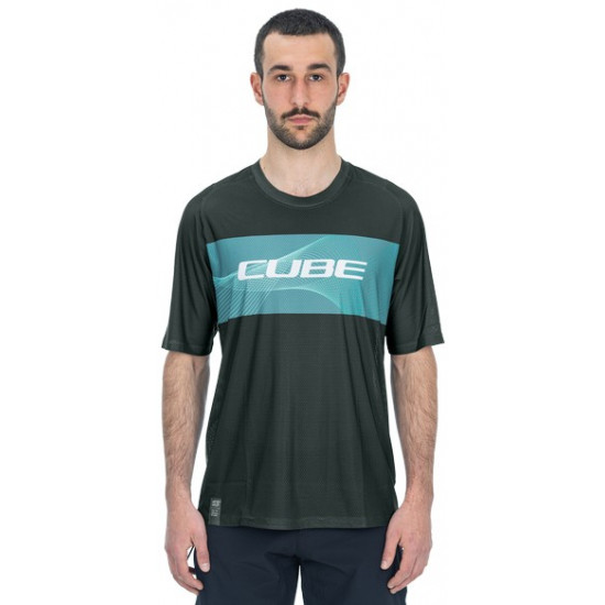- Cycling jersey Cube Vertex Round Neck S/S grey'n'mint