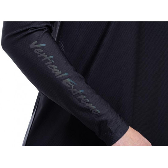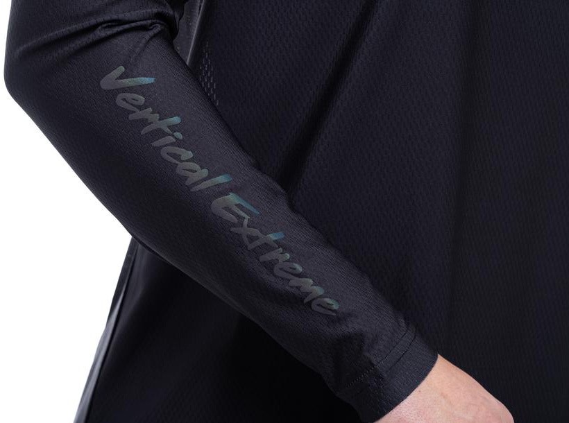 - Material: Front part and sleeves: 85% polyester, 15% elastane; Back part - 100% polyester