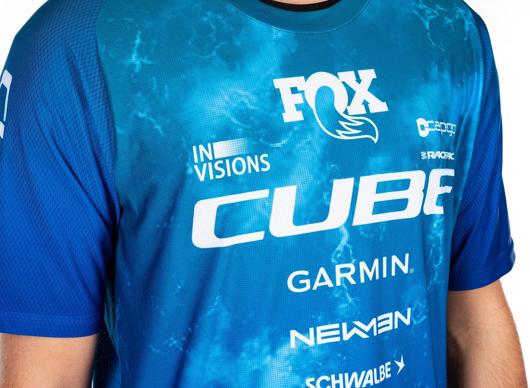 The cube mtb dh jersey x actionteam short sleeve is characterized by its lightweight material, which offers optimal freedom of movement on the trails. A practical pocket on the left side allows quick access to the lift card. The jersey is neck brace compatible and can be dried quickly and easily due to the integrated hanger.