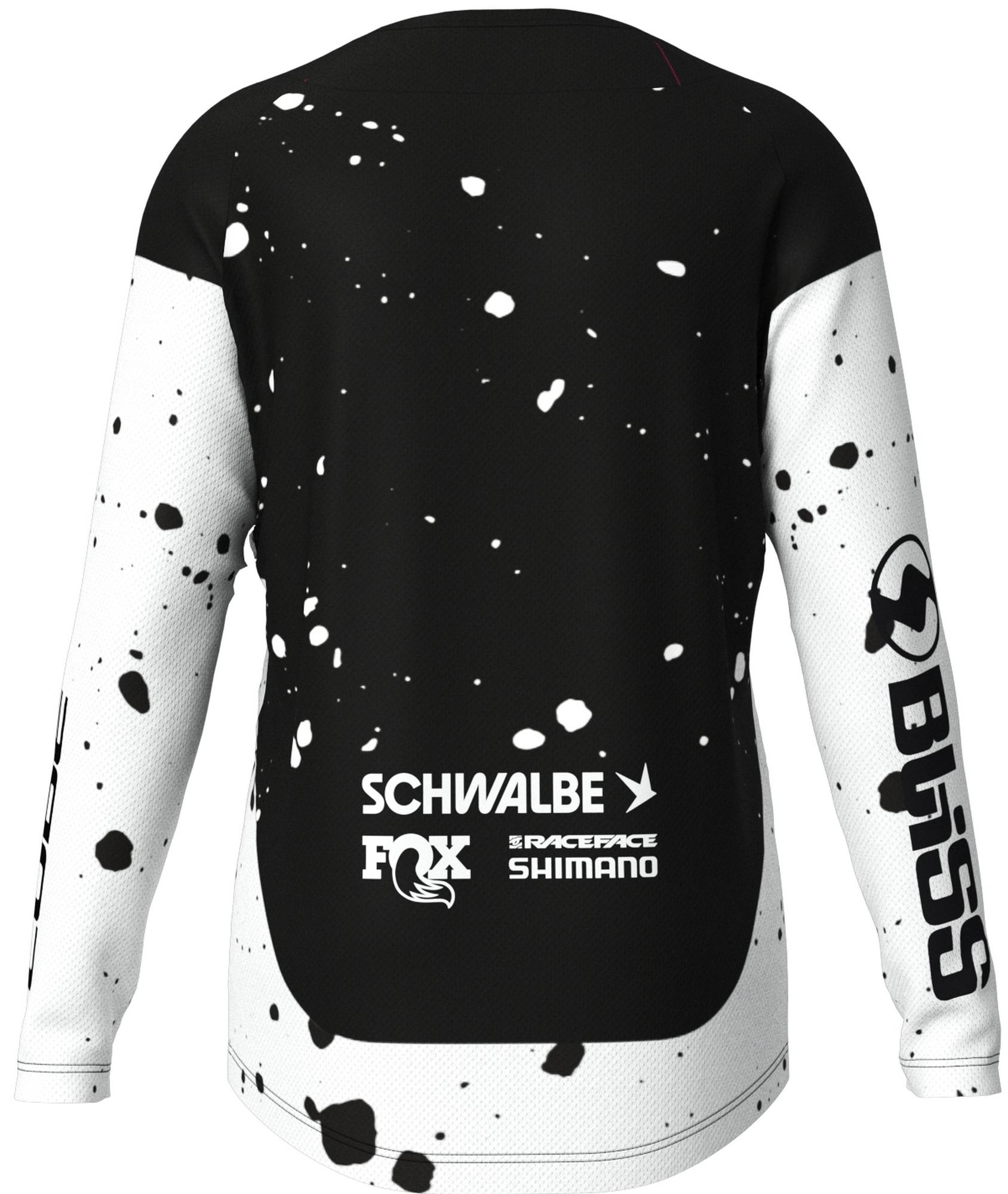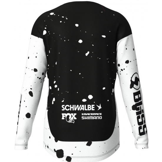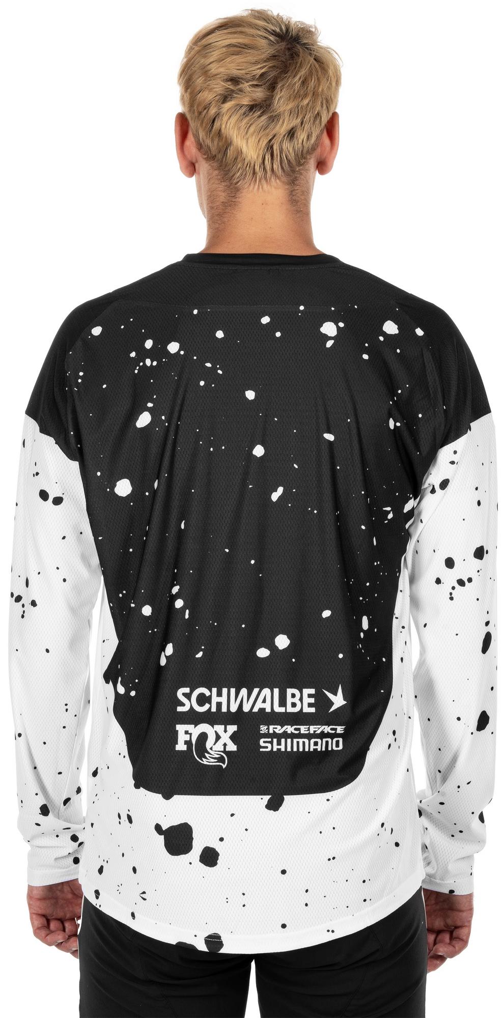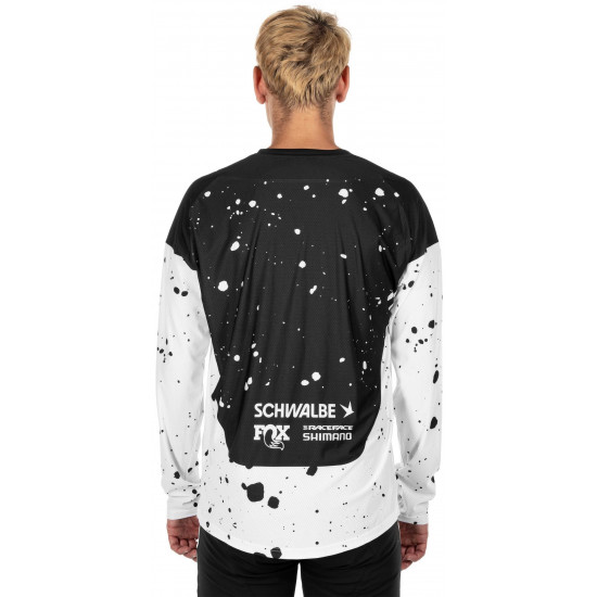 Our long-sleeved factory racing jersey is made from lightweight fabric for maximum freedom of movement and comfort. All you have to do is concentrate on shredding the trails. Theres a practical pocket on the left for quick access to your lift pass. The jersey can also be worn with a neck brace and comes with an integral hanger loop for fast drying between runs.