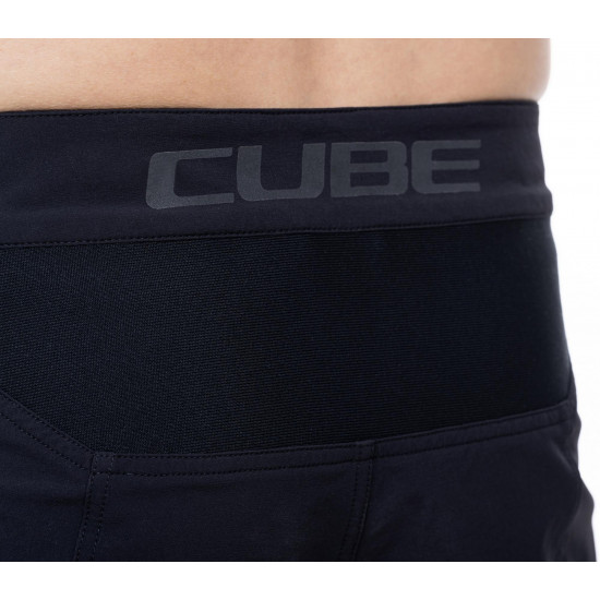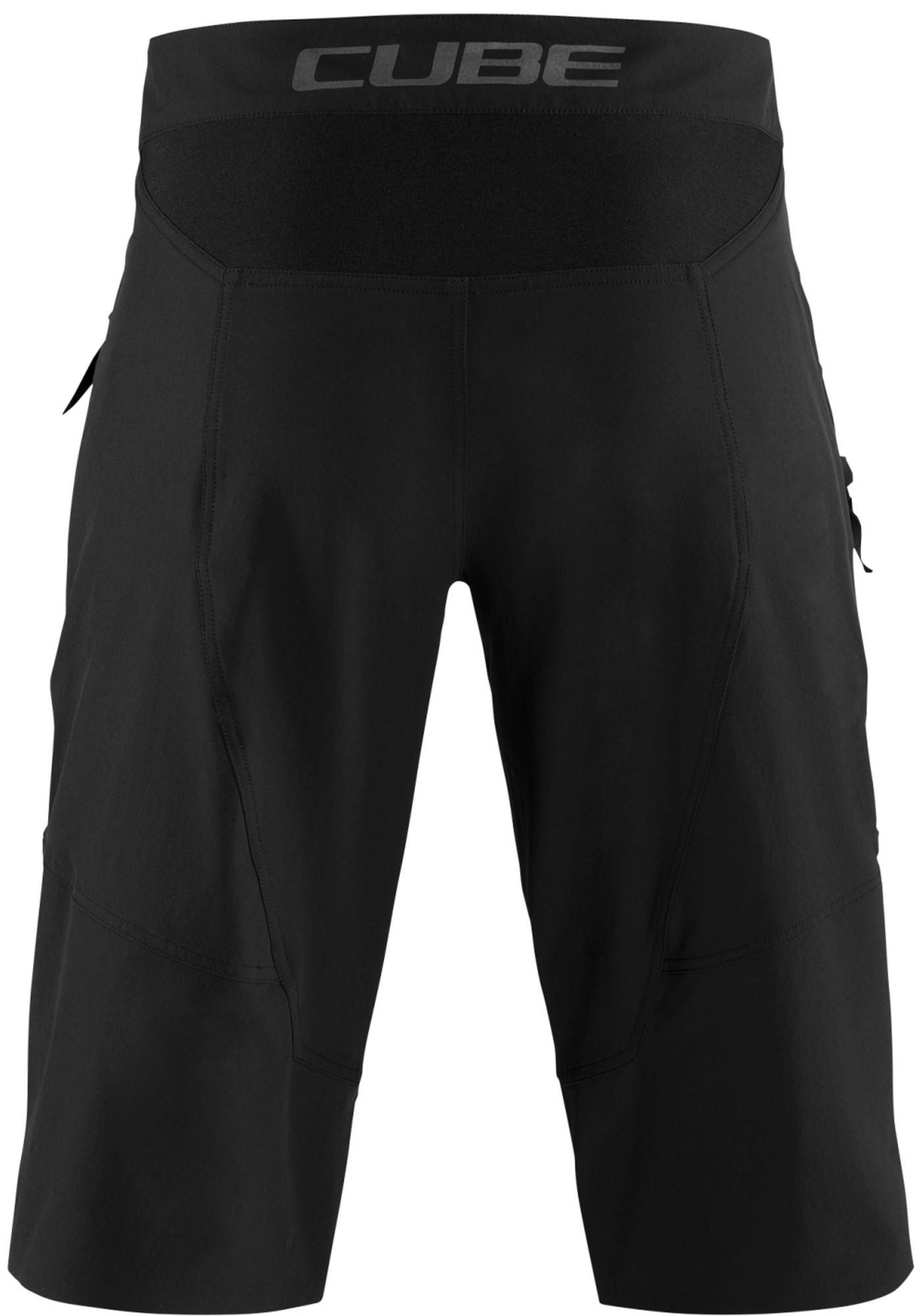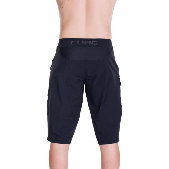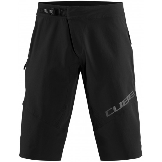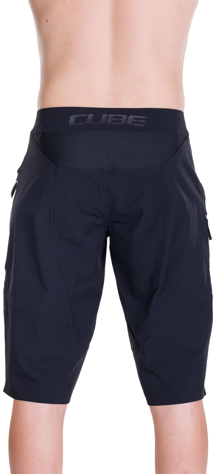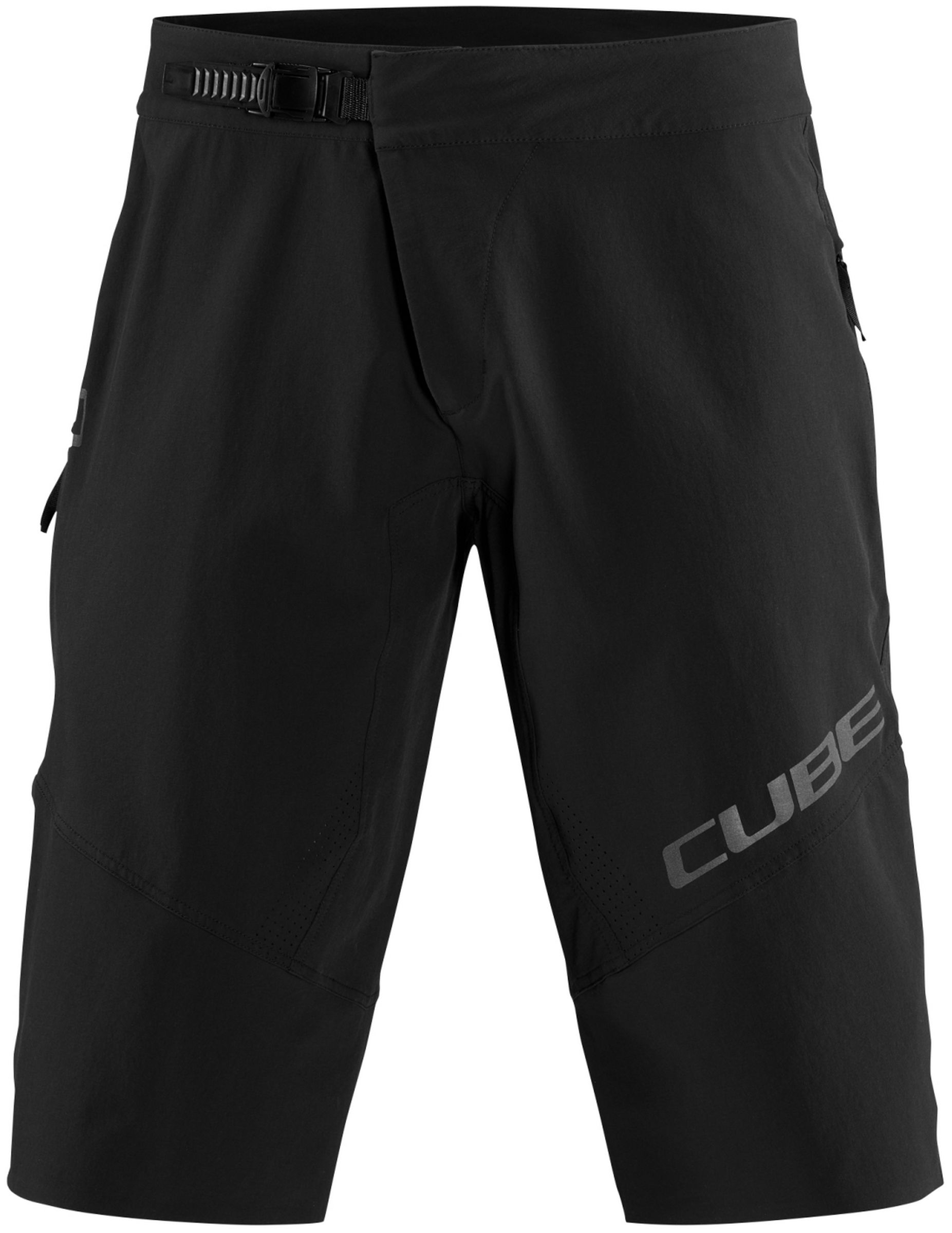The mtb baggy shorts make no compromise on style and functionality. We developed these baggy shorts together with our cube actionteam riders. The hard-wearing fabric is light yet durable. Great ventilation comes courtesy of laser-cut airflow vents whilst reflective details improve safety and visibility in low-light conditions. Cleverly positioned zip pockets keep your phone, lift pass, keys and other essentials safe yet easily accessible thanks to the zip pull tab that means you don't have to take off your gloves. The adjustable waistband combined with a stretch insert make these shorts incredibly comfortable to wear. And the mtb baggy shorts are compatible with all standard protectors.