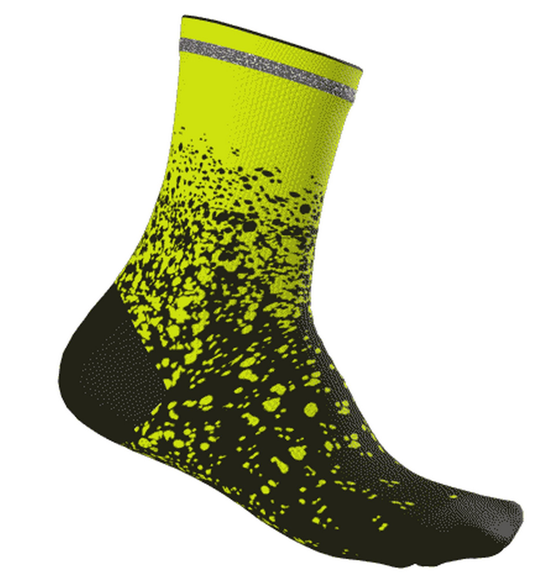 Whats bright, spins fast and definitely catches the eye of other road users? You've guessed it: the cube safety socks. They combine a hi-vis yellow/black colourway with a knitted-in reflective strip that shines out in the dark when illuminated. With differently knitted zones for optimal temperature regulation.
