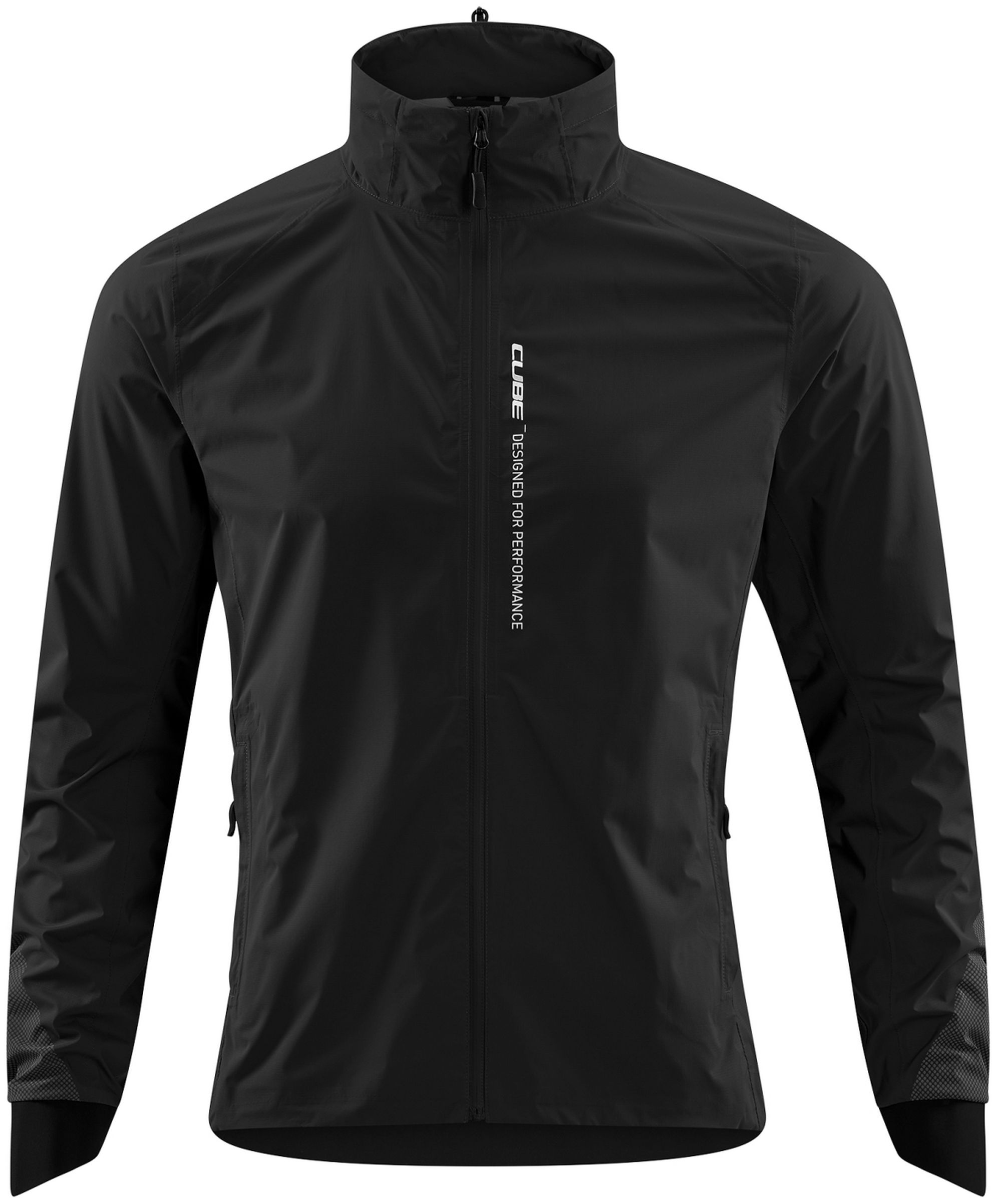 The cube road/xc rain jacket was designed to handle a number of the challenges you may face. Its wind- and waterproof without trapping the heat. Its durable but light, and can be tightly packed away. Constructed from cubes innovative, highly breathable primetronic fabric with 2.5 Layers, taped seams and a waterproof rating of 10,000 mm, weve reached our goal. A truly functional rain garment with the quality you would expect from cube as well as an athletic, performance-oriented fit.