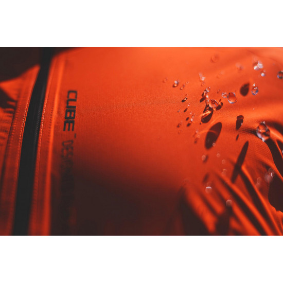 The cube road/xc rain jacket was designed to handle a number of the challenges you may face. Its wind and waterproof without trapping the heat. Its durable but light, and can be tightly packed away. Constructed from cubes innovative primetronic fabric with 2.5 Layers and taped seams, weve reached our goal. A truly functional rain garment with the quality you would expect from cube as well as an athletic, performance-oriented fit.