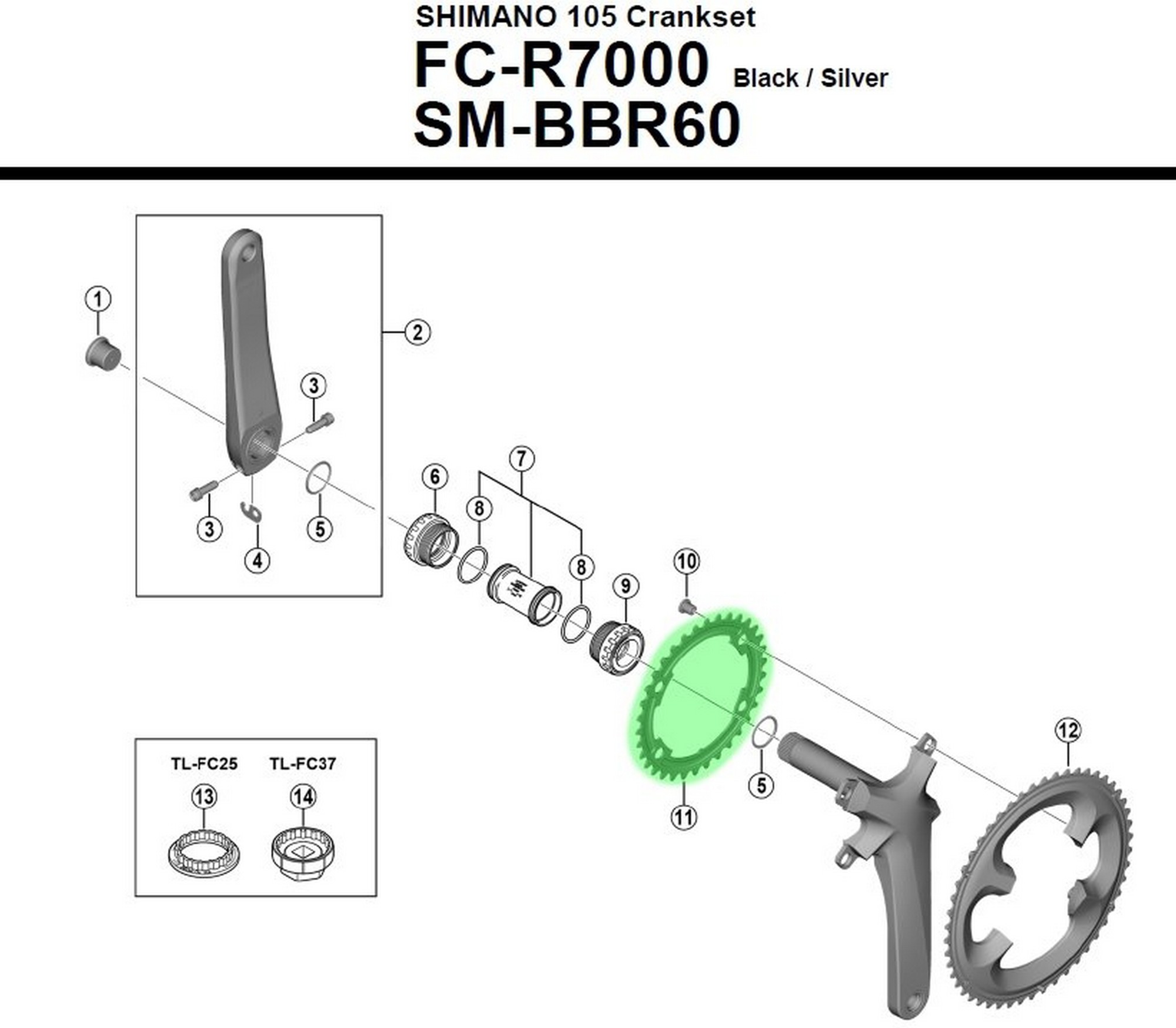 Shimano replacement chainring for 105 FC-R7000 11-speed crankset. The hollow forged chainrings provide a significant save weight and increased rigidity and guarantees optimum power transfer and further improved shifting characteristics.