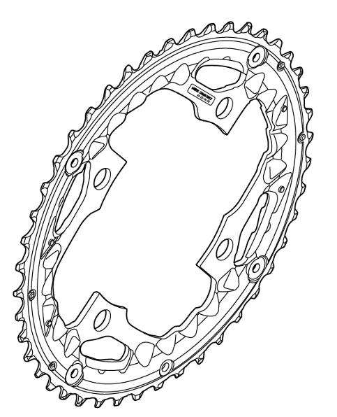 Shimano replacement chainring for FC-T521 3x10-speed crankset with 44/32/24 teeth.