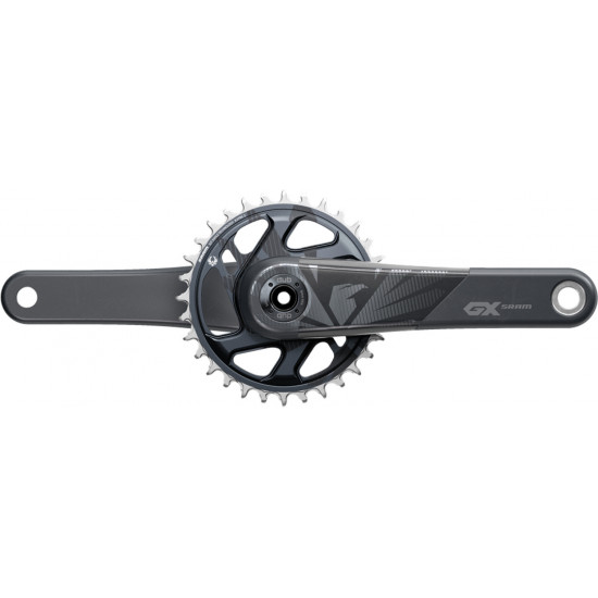 The SRAM carbon GX Eagle crankset delivers consistent performance every time out. Featuring SRAM's X-SYNC 2 tooth profile chainring, the Carbon GX crankset is engineered for complete chain control. Each tooth's thickness is precisely toleranced and controlled to work seamlessly with the chain's inner and outer links. DUB technology features a better-engineered bottom bracket and a spindle design. Together, these allow for a more uniform approach to bottom bracket fitment, better sealing against contamination and forward and backward compatibility. Now everyone can benefit from a measure of durability.
