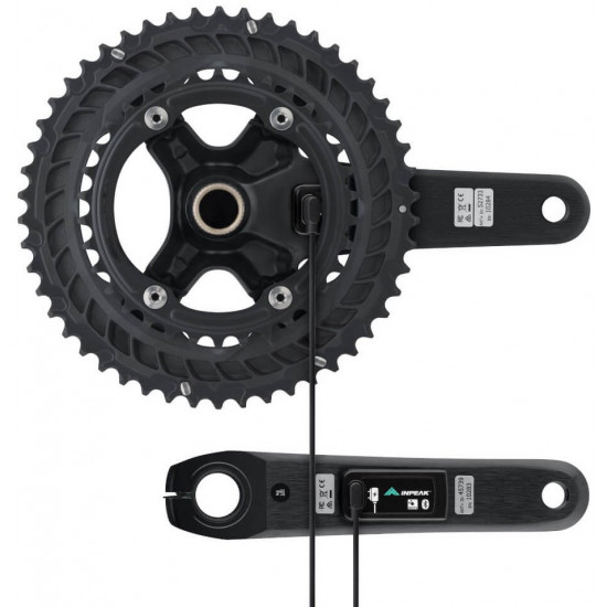 This is our newest version of a power meter created with modernity in mind. We have equipped the reliable POWERCRANK-E measuring system with a rechargeable battery, which you charge using the included magnetic USB cable. Its not just a power measuring device, its your training partner thanks to which youll enter a new level of sportsmanship. The INPEAK POWERCRANK-E power meter uses ANT+ and BLE transmission protocols to send power, cadence and a host of detailed cycling performance data. The low-profile, waterproof and durable housing is designed especially for road and gravel bikes. Precise and accurate readings of generated power regardless of weather conditions are provided by ATCs automatic temperature compensation mechanism from -5°C to +50°C.