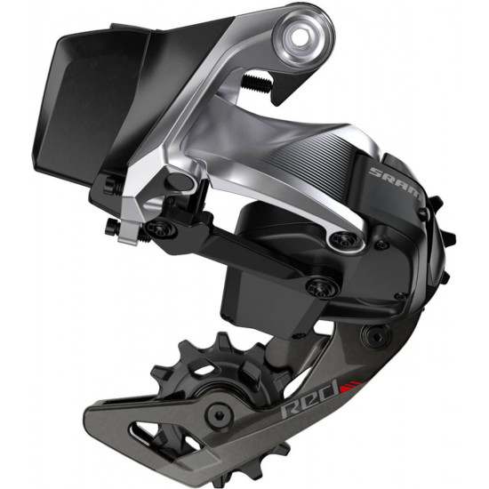 The SRAM RED eTap rear derailleur executes shifts the instant you demand. Wirelessly. It's easy to set up, clean in appearance and delightfully uncomplicated. Mechanical necessities such as a carbon pulley cage, ceramic pulley bearings, and anodized alloy artfully blend with proprietary electronic advancements to deliver a shifting wonder.