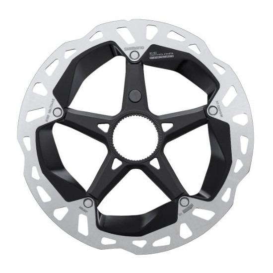 The Steps RT-EM910 E-Bike disc rotor from Shimano with Center-lock mount, ICE-TECH FREEZA technology and integrated magnet. SHIMANO RT-EM910 disc brake rotors for speed sensor systems deliver powerful and consistent brake performance in all riding conditions. The ICE TECHNOLOGIES FREEZA rotor significantly reduces heat build-up in the brake system to ensure consistent high performance braking even on the steepest downhill stretches. SHIMANO's CENTER LOCK mounting system makes installing and removing rotors quick and easy thanks to the spine mount and lock ring design.
