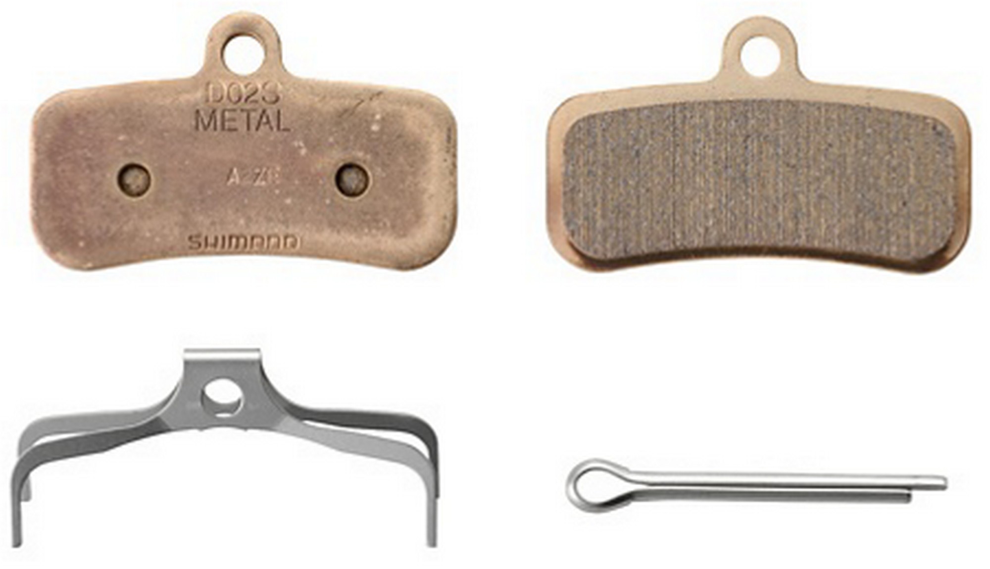 The Shimano D02S metal brake pad for XT, SAINT, ZEE, SLX, DEORE, BR-MT520 and BR-MT420 4-piston disc brake.