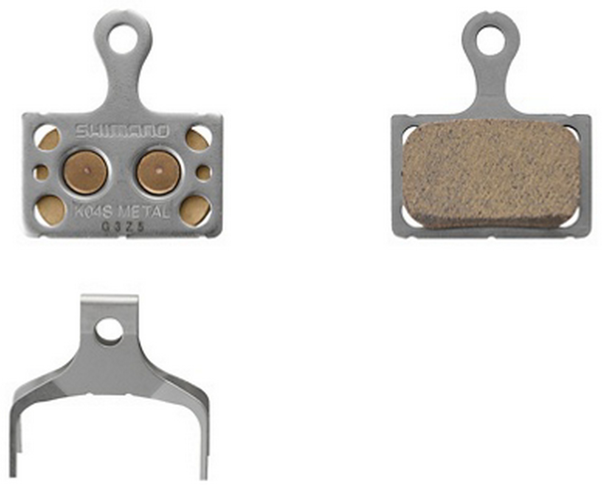 The K04S metal brake pad without cooling fins from Shimano for XTR, XT, SLX, DURA-ACE, ULTEGRA, 105, TIAGRA and GRX 2-piston disc brake.