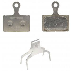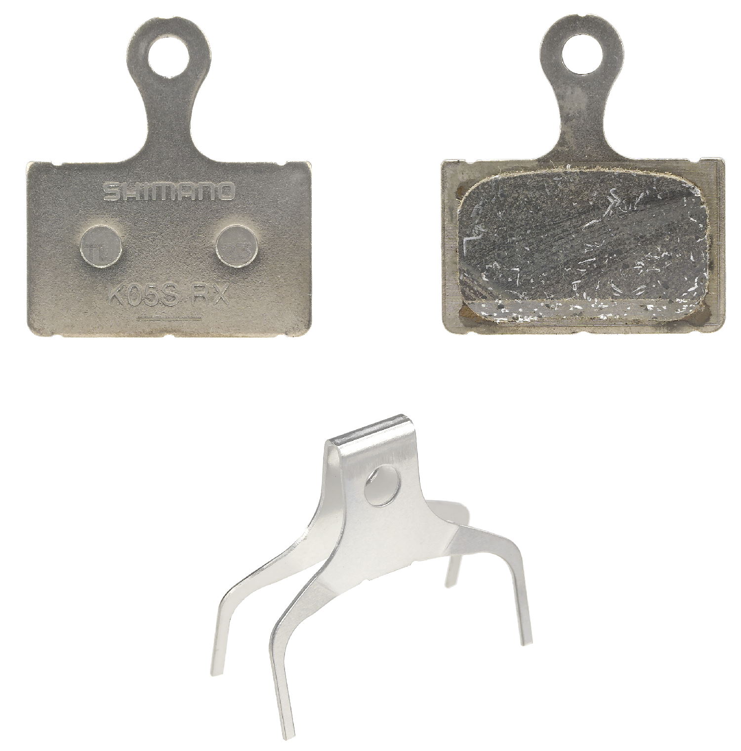 Shimano K05S disc brake pads made of resin and equipped with steel base plates. 50 % more wear resistant than its predecessor K03S.