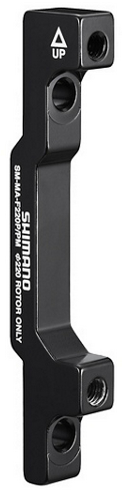 The Shimano SM-MA-F220P adapter allows the installation of Shimano Post Mount caliper on forks and frames with Post Mount 180mm direct style in conjunction with 220 mm rotors.
