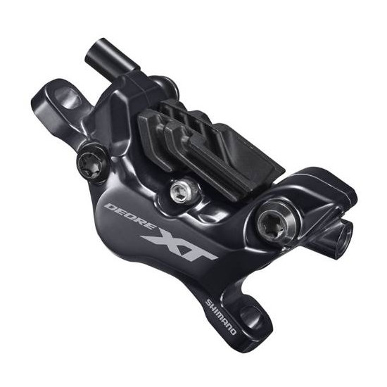 The SHIMANO DEORE XT M8120 caliper features consistent braking performance and reliable stopping power in all conditions. The 4-piston caliper instills greater downhill confidence and control.Quicker Piston retractionReduces disc brake rotor wobbling noise and increases braking power by 10% (vs. M8000)Four PistonBanjo type connection and inside hose routingSuperior modulation gives you greater controlHigh braking power instills greater downhill confidence and controlQuick and easy assemblyWeight: 410 gRecommended brake hose (Kit): SM-BH90-SBMBrake Type: Hydraulic disc brakeHose joint: BanjoMount type (available for IS mount with mount adapter): Post-typeRecommended oil: SHIMANO MineralBrake pads: D03S Resin (without cooling fin), D02S Metal (without cooling fin)Compatible pads (included): N04C Metal (with cooling fin)Pad mount: Pad axlePistons: 4Recommended brake lever: BL-M8100Recommended brake rotor: RT-MT800Ice technology pad compatible caliper