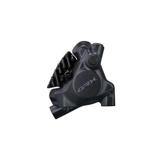 The Shimano GRX BR-RX410-R hydraulic 2-piston brake calliper for the rear wheel has a flat-mount mount and L05A-RF resin disc pads with cooling fins. The GRX BR-RX410 disc brake caliper brings a new level of control to gravel cycling with enhanced modulation and a quicker initial braking point. And despite its smaller construction, the system is quieter and easier to maintain.
