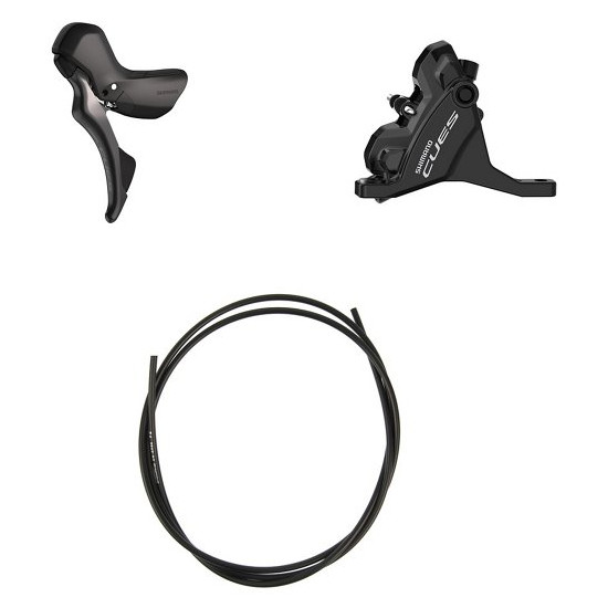 Shimano CUES shift/brake set consisting of the ST-U6030 lever for safe handling and the hydraulic BR-U6030 disc brake caliper for constant braking power. Smooth and simple maintenance is ensured by the tried and tested One Way Bleeding system and the Easy Hose Joint System, which makes brake hose replacement considerably easier.