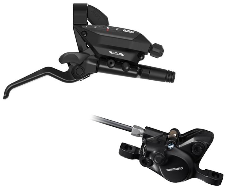 Hydraulic Shimano disc brake set consisting of the ST-EF515 shift/brake lever for safe handling and the BR-MT410 brake caliper for constant braking power. Smooth and simple maintenance is ensured by the tried and tested One Way Bleeding system and the Easy Hose Joint System, which makes brake hose replacement considerably easier.