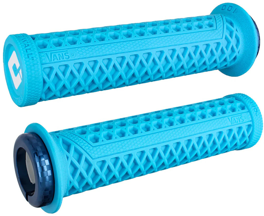 Two California Originals have teamed up to bring you an updated version of one of your favorite grips. The new Vans v2.1 Lock-On Grips feature a new single-clamp design for simplified installation and an updated waffle pattern for better comfort and control. The grips are constructed from ODIs proprietary materials and are available in six awesome colors with custom checkered clamps in coordinating colors. This modern take on the Vans grip adds updated features to the classic design while still providing the rider with the distinctive feel that they have come to love.
