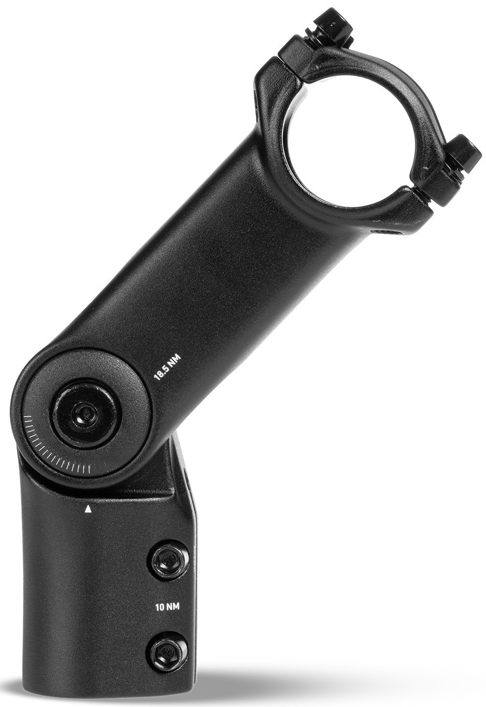 This stem is made of 3D-forged 6061-T6 aluminium, which stands for maximum stability and outstanding weight. The adjustable angle from 0° to +90° makes finding the perfect set-up to suit your individual riding position a cinch. Designed for trekking bikes.